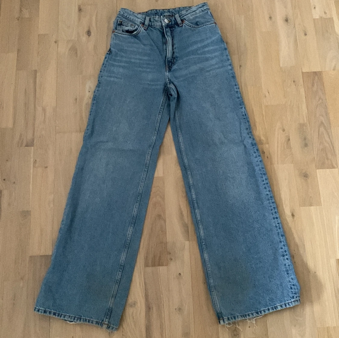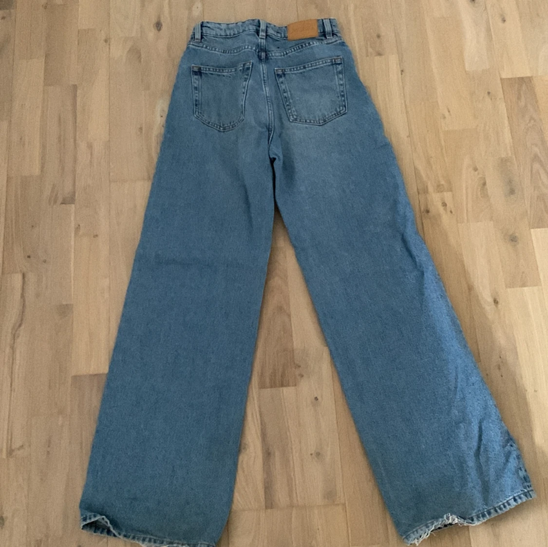Ett par blåa jeans från Monki, inga defekter! Längd 32. Går jätteenkelt att sy till lågmidjade om man vill ha det💕 Kontakta mig så kan pris diskuteras🌟