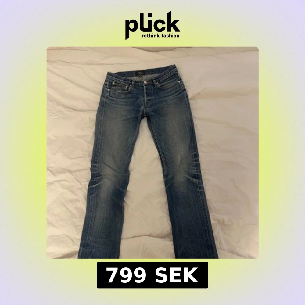 Snygga jeans från APC. Sjukt snygga raw denim. Jätte fina tyg slitningar vid knäna och på bakfickorna. Väldigt bra skick, känns som nya.