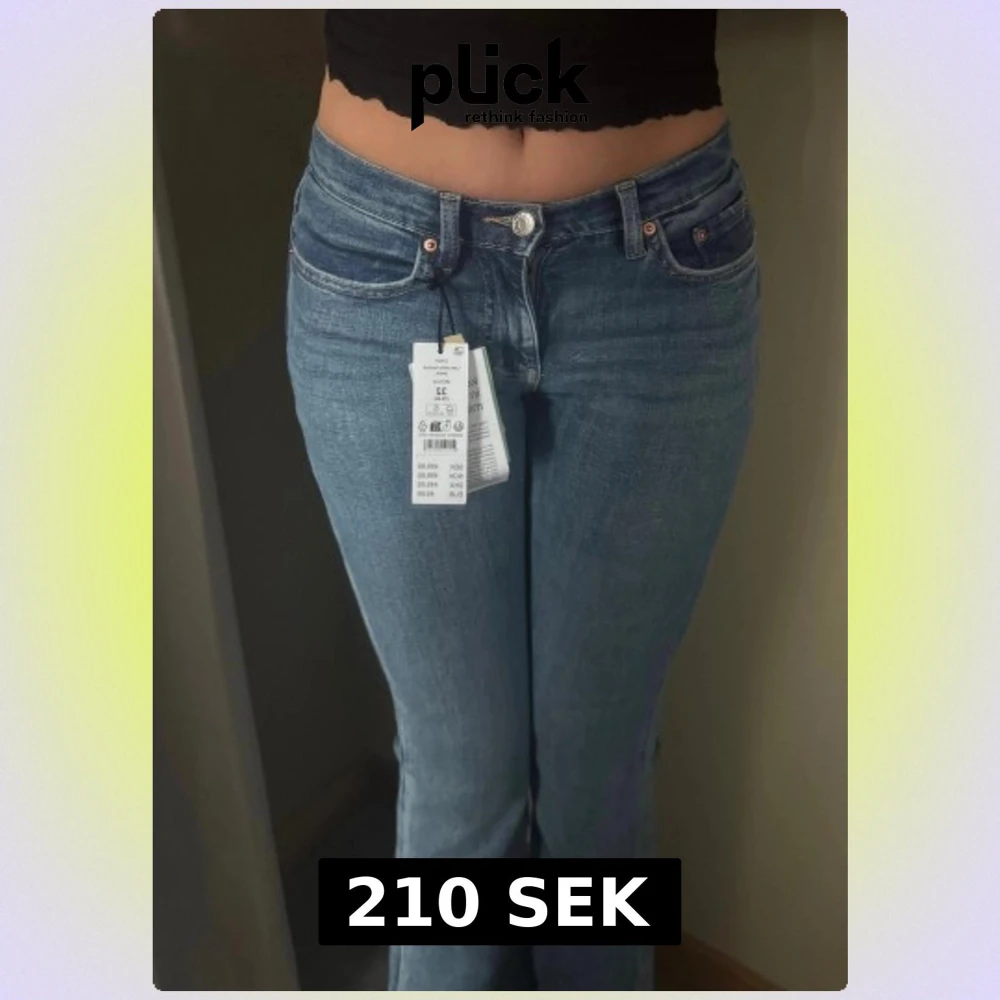 Helt oanvända/nya lågmidjade jeans ifrån ginatricot. Jeansen är i storlek 32 och är i väldigt bra skick. Jag skulle säga att de är nån cm korta än vanligtvis eftersom de är petite, själv är jag 162cm. Köpta för 499kr.