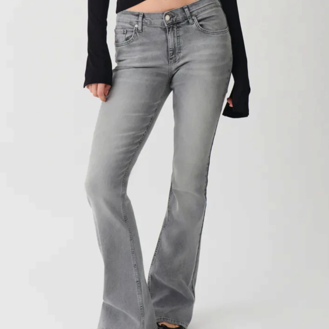Fina Low waist boot cut jeans från Gina tricot i strl 34, Andvänt några gånger men de är ganska fina förutom lite slitningar längst ner på byxorna men det är inget som märks.