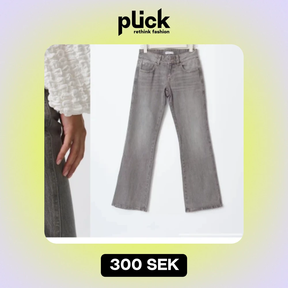 Ett par jeans från Gina som är grå och low Waist bootcut jeans har använt en gång för dem är förstora för mig och dem är i storlek 42 original pris är 500kr
