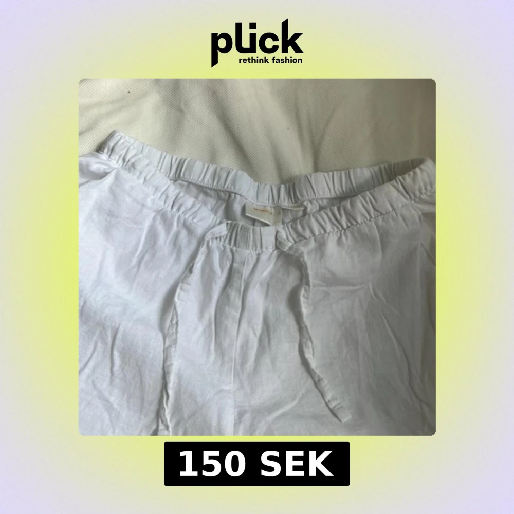 Snygga och luftiga vita linnebyxor från Gina Tricot med resår i midjan och knytband. Perfekta för varma dagar och ger en chill vibe. Byxorna är raka i modellen och har en avslappnad passform.