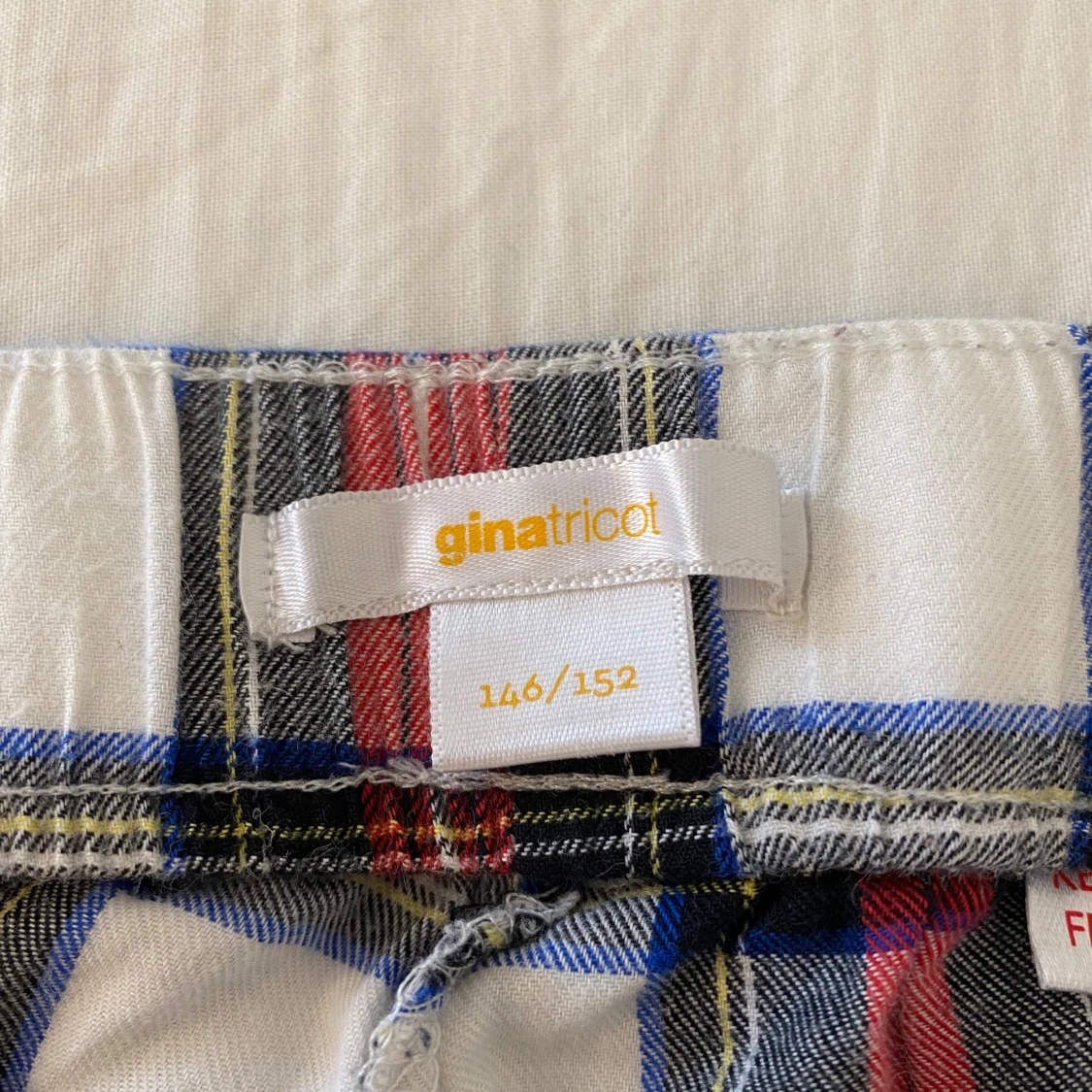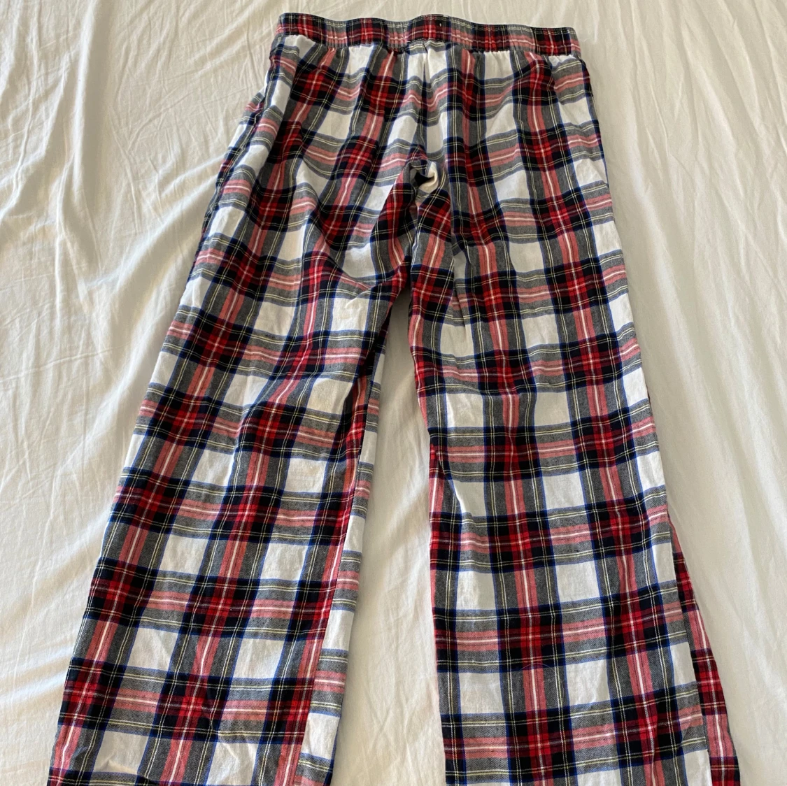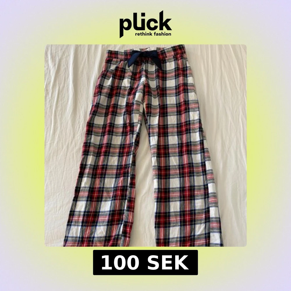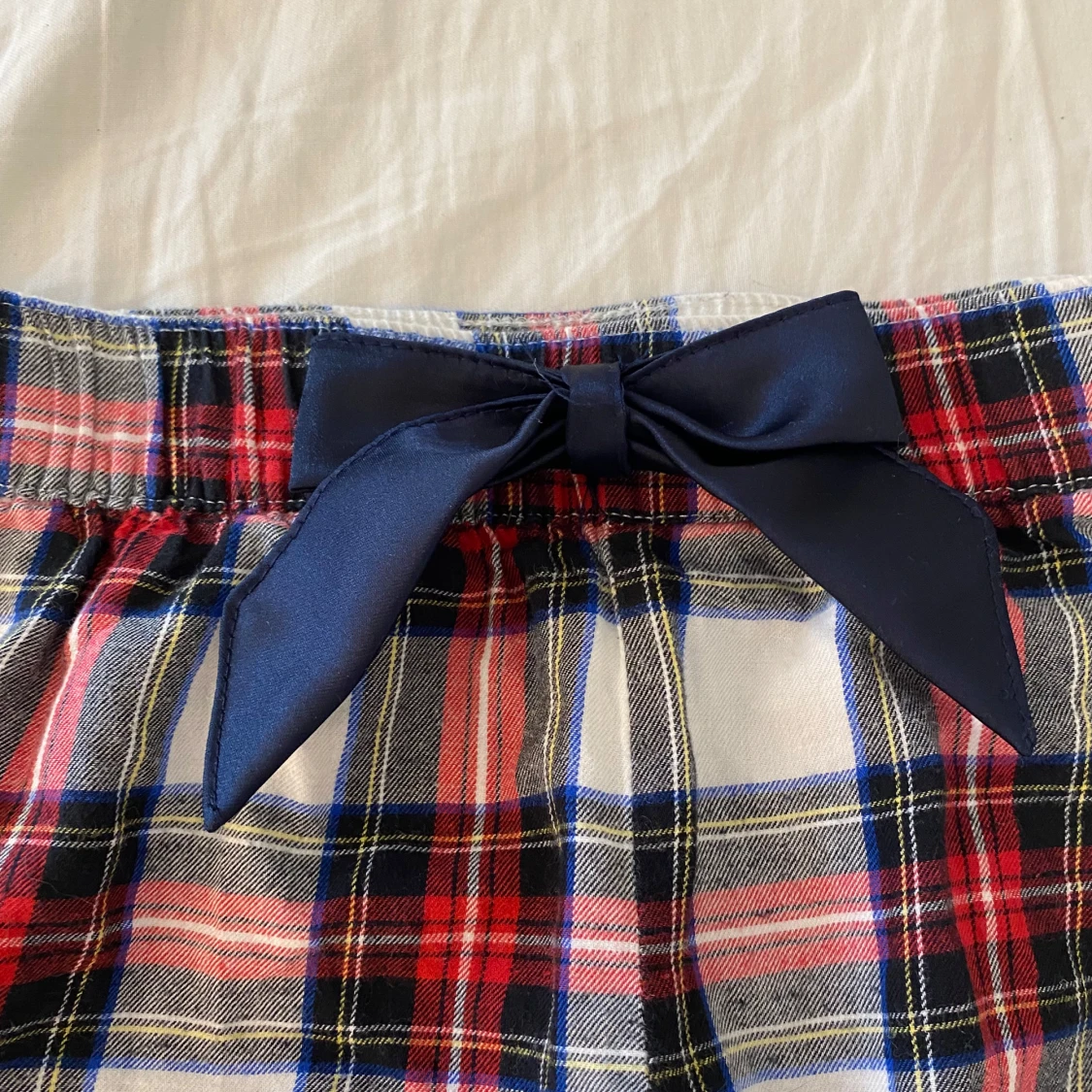 Mysiga pyjamasbyxor från Gina Tricot i röd, blå och vit rutig bomull. Byxorna har en mörkblå rosett framtill och resår i midjan för extra komfort. Perfekta för chill hemma eller sleepovers.😴😻