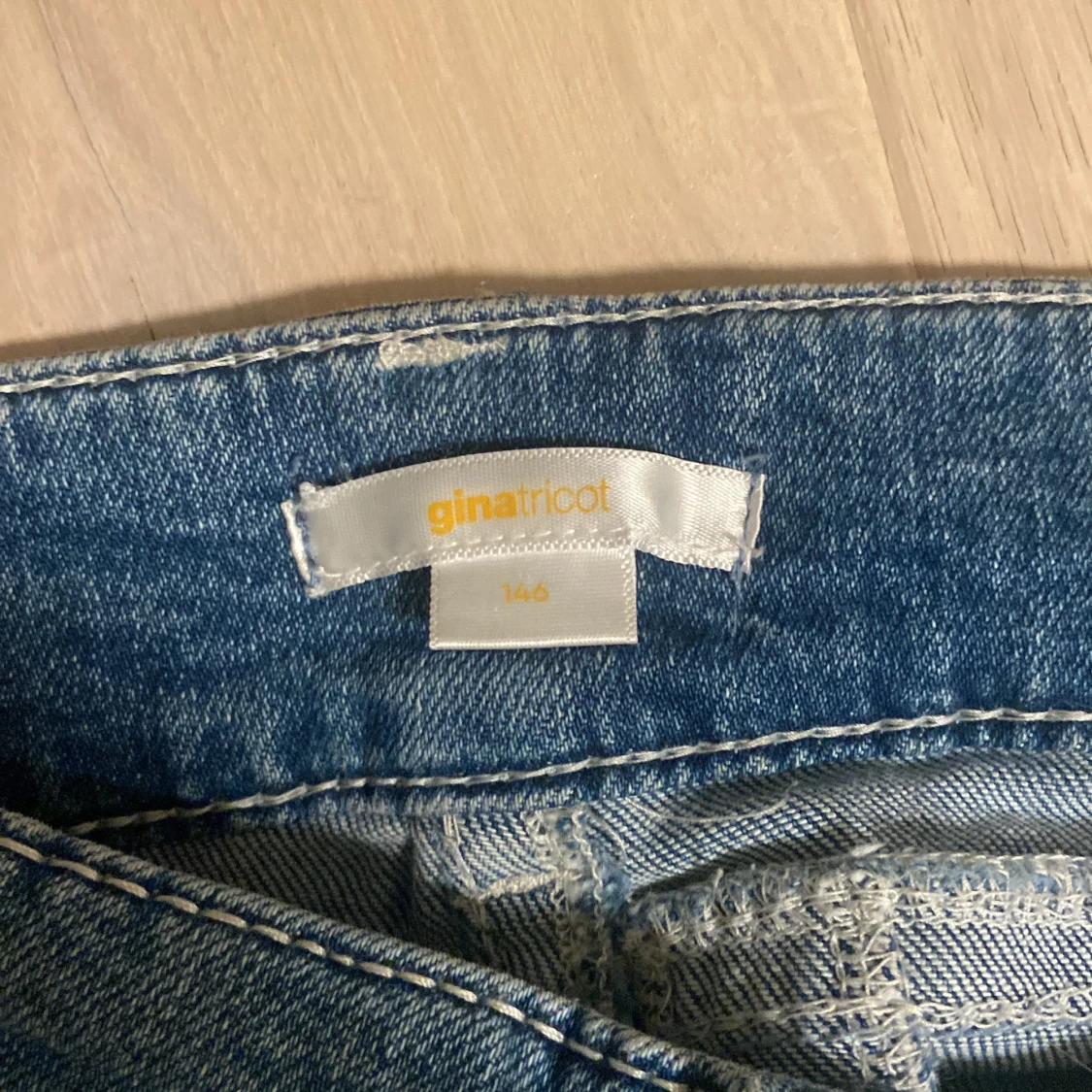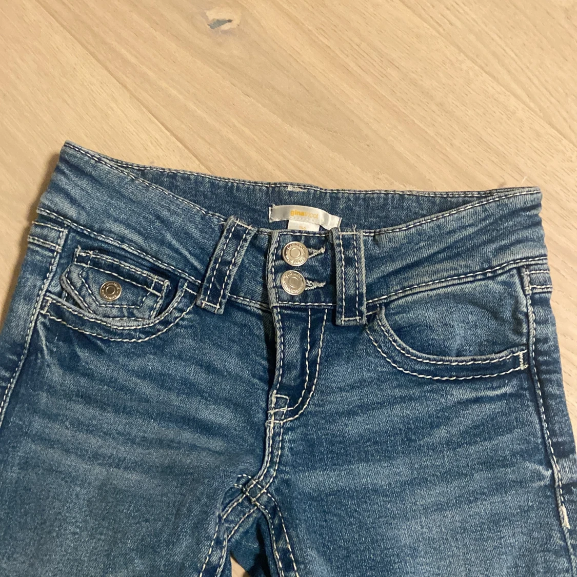 Säljer ett par snygga mörkblåa jeans från Gina i storlek 146. Byxorna har inga defekter och nypris var 400 kr💞