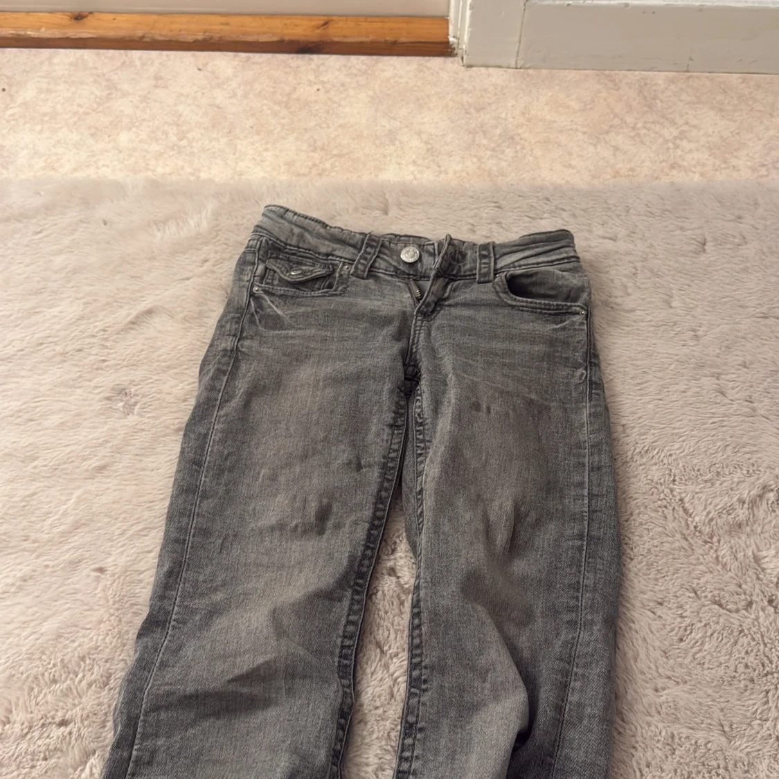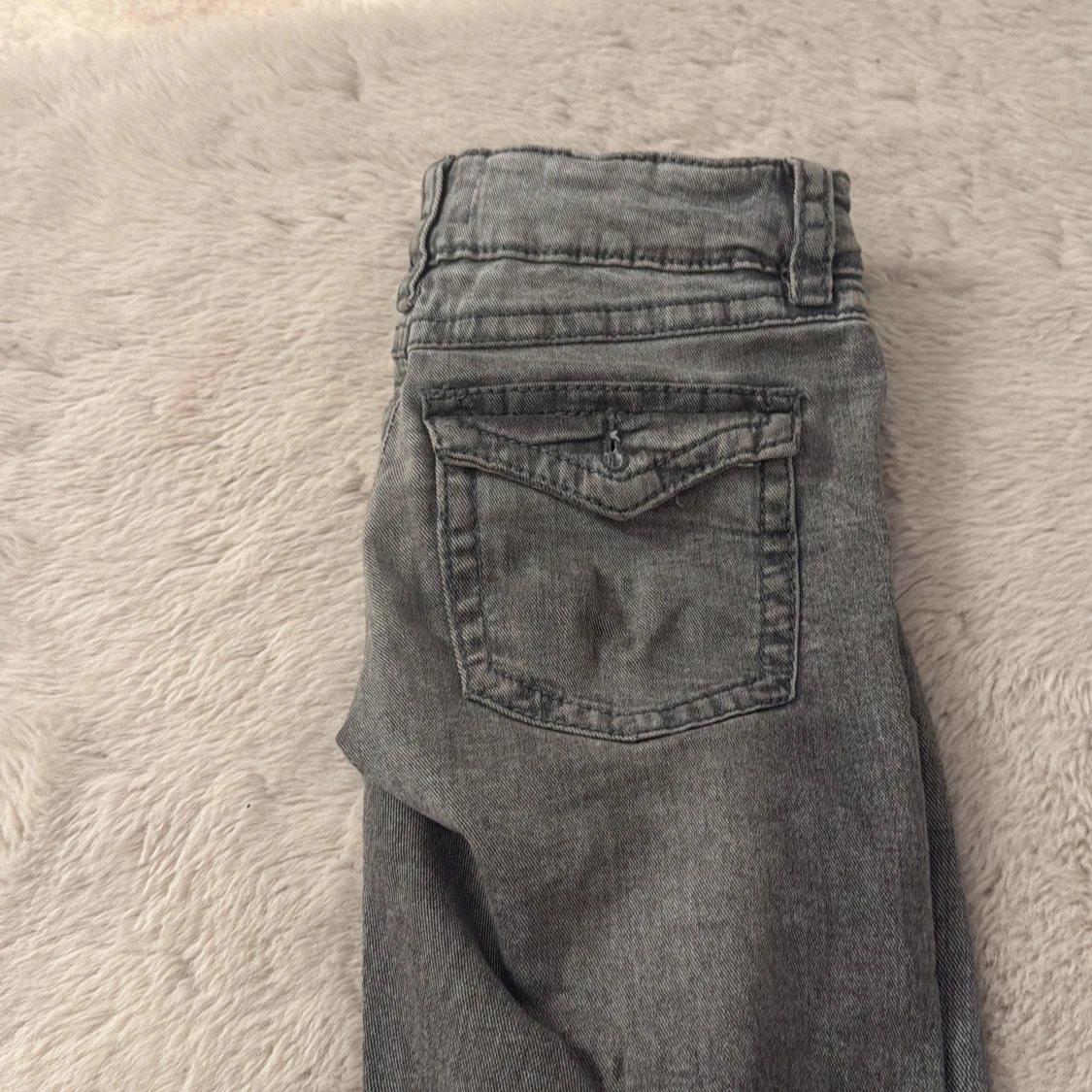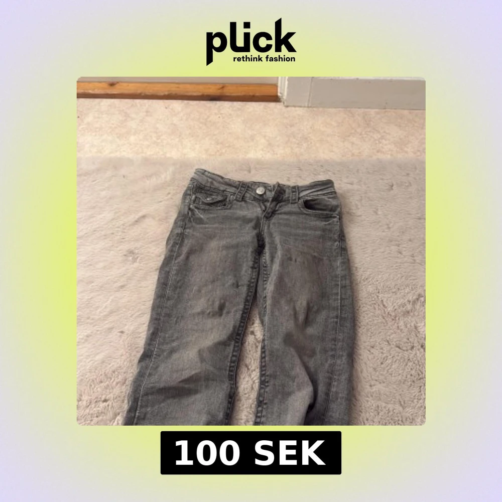 Snygga grå jeans från Gina Tricot i klassisk femficksmodell med knapp och dragkedja framtill. Jeansen har raka ben och en cool tvättad look. Bakfickan har lock med knapp. Perfekt för dig som gillar avslappnad stil.