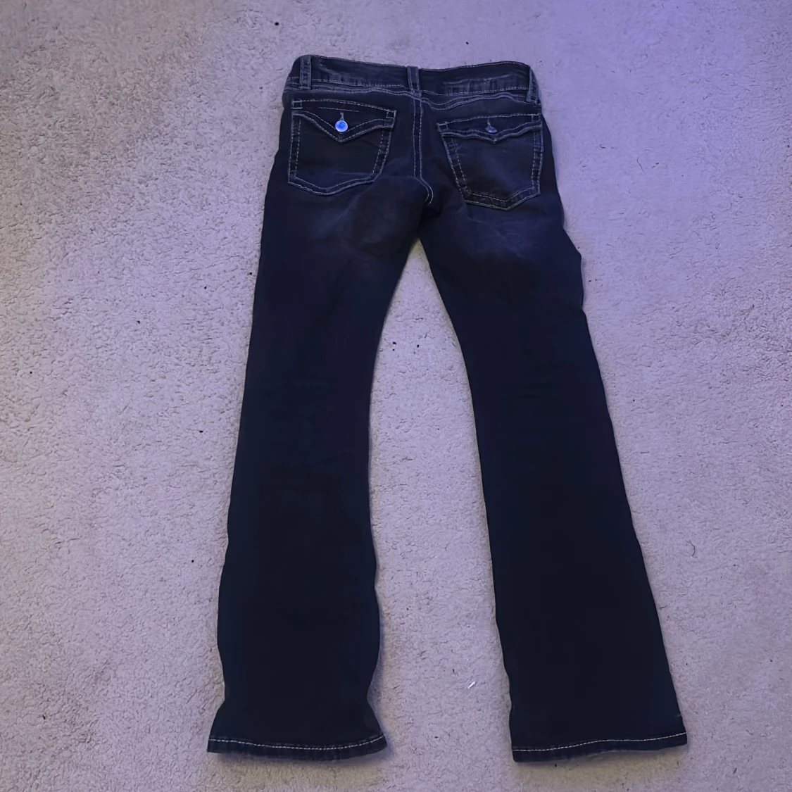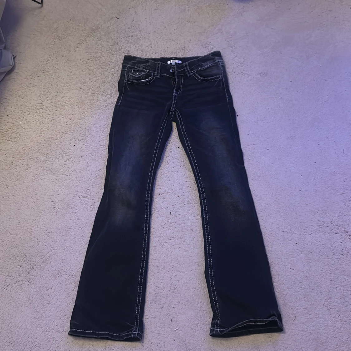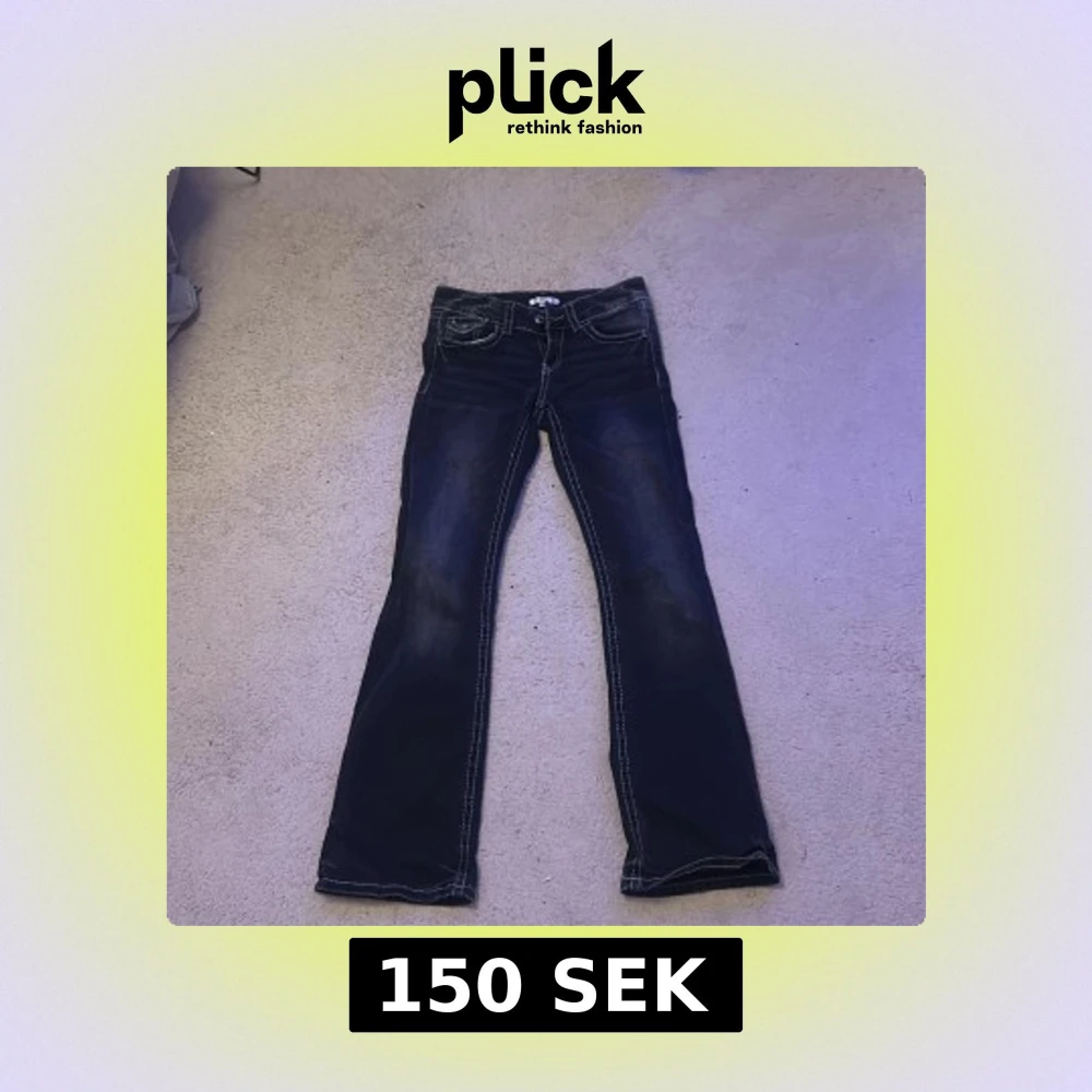 Mörkgrå svarta jeans från Gina Tricot i storlek 152. Modellen har bootcut-ben, markerade sömmar och klassiska fickor både fram och bak. Jeansen har låg midja och är tillverkade i ett mjukt denimtyg som sitter skönt hela dagen.