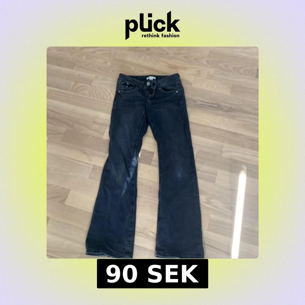 Snygga svarta jeans med bootcut passform och coola fickdetaljer med knappar både fram och bak. Jeansen har låg midja och är tillverkade i mjukt denimtyg som sitter skönt. Perfekta för dig som gillar en klassisk men trendig look.