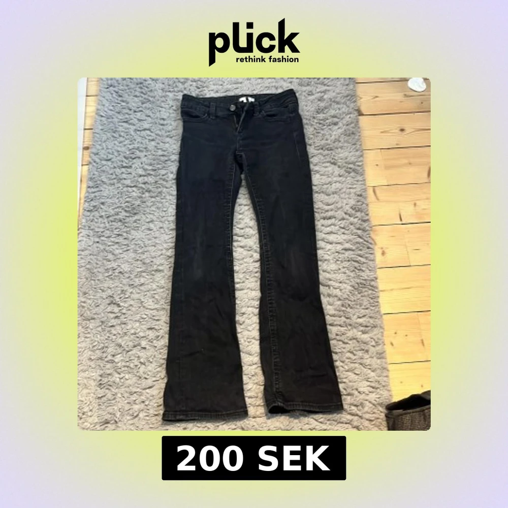 Snygga svarta jeans med bootcut passform och klassiska fem fickor. Baktill finns fickor med lock och knappdetaljer. Jeansen har normal midja och är tillverkade i ett mjukt bomullsmaterial med lite stretch för extra komfort.