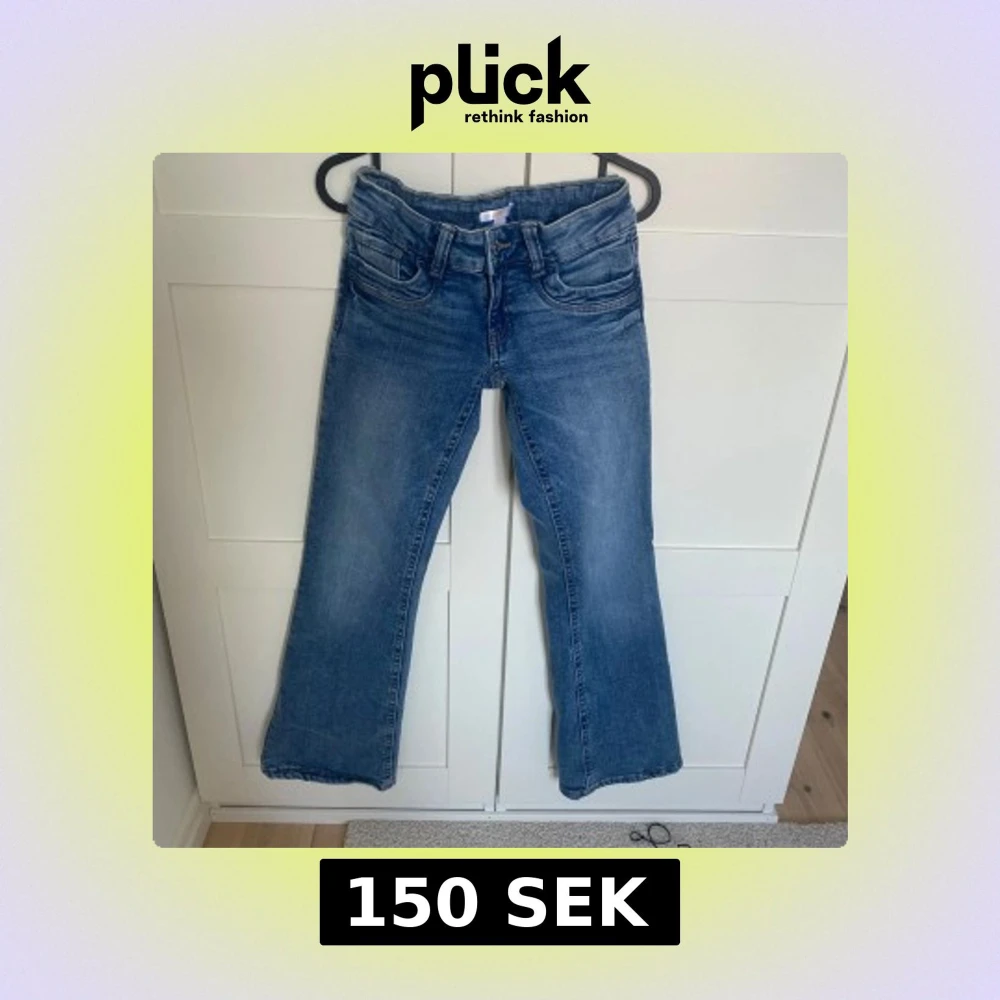 Blåa jeans bootcut och utsvängda ben, mid-waist. Endast provat.🩷