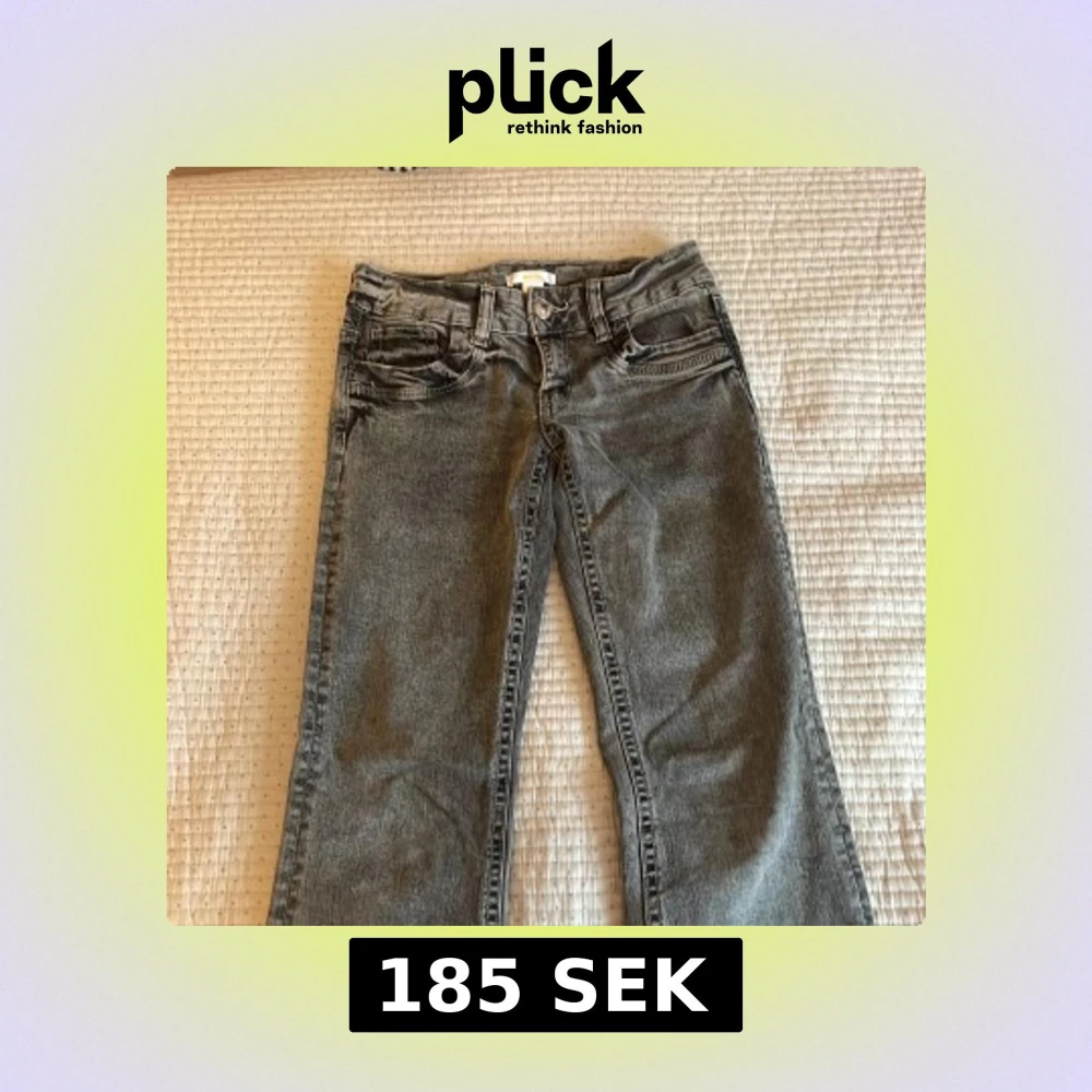 Snygga grå jeans med tvättad effekt och klassisk femficksdesign. Modellen har bootcut-ben och normal midja, vilket ger en avslappnad men ändå trendig siluett. Perfekta för dig som gillar en lite retro vibe och vill ha ett par jeans som sticker ut.