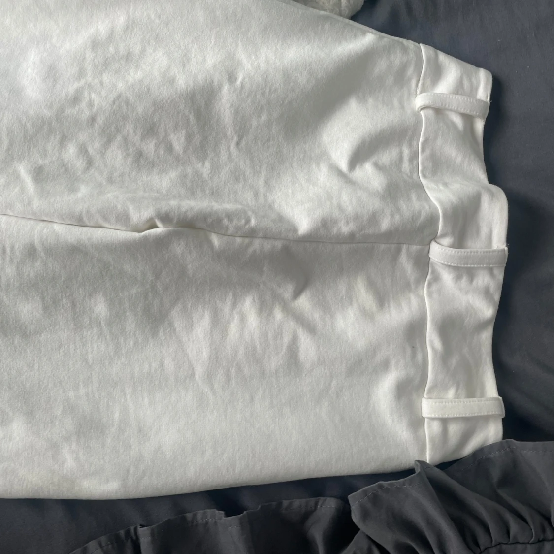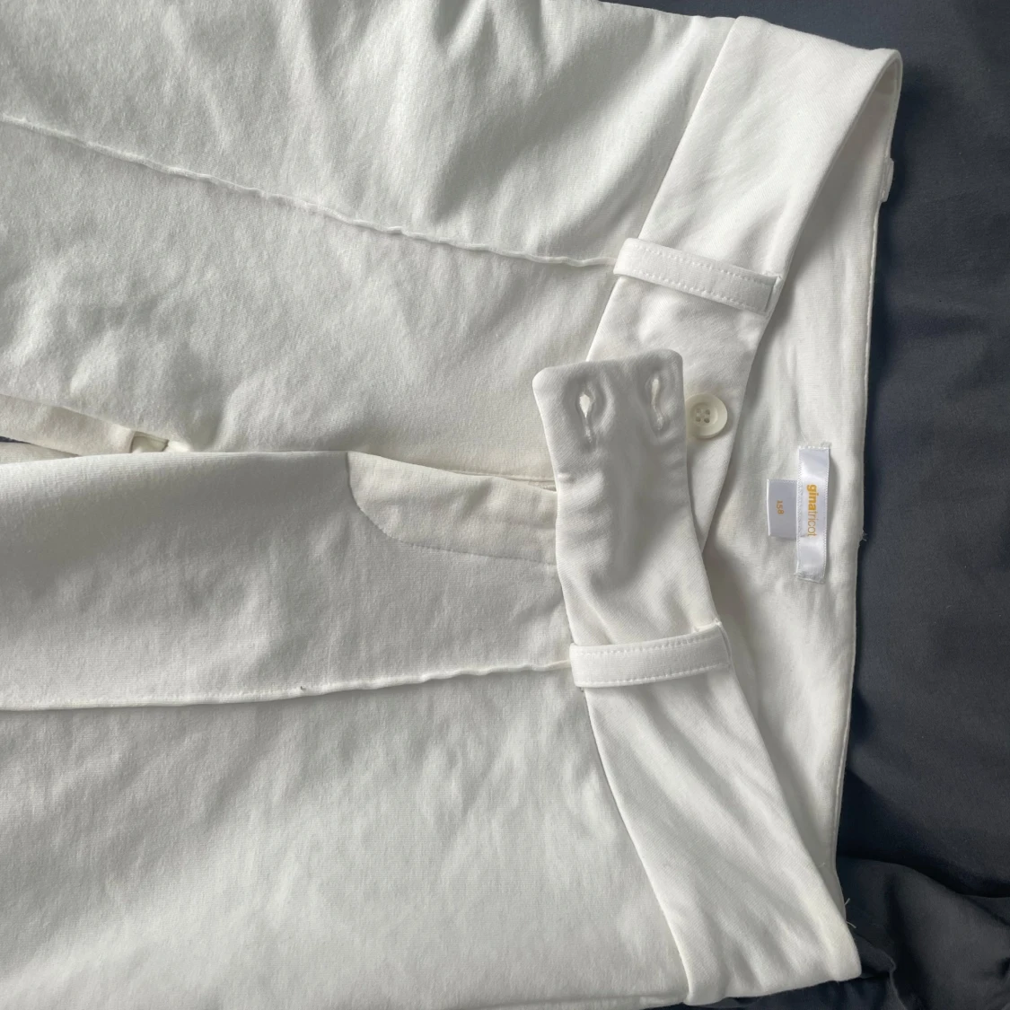 Snygga vita kostymbyxor från Gina Tricot i storlek 158. Byxorna har raka ben, bälteshällor och stängs med knapp och dragkedja. Perfekta för en clean och stilren look. Tillverkade i mjukt bomullsmaterial.