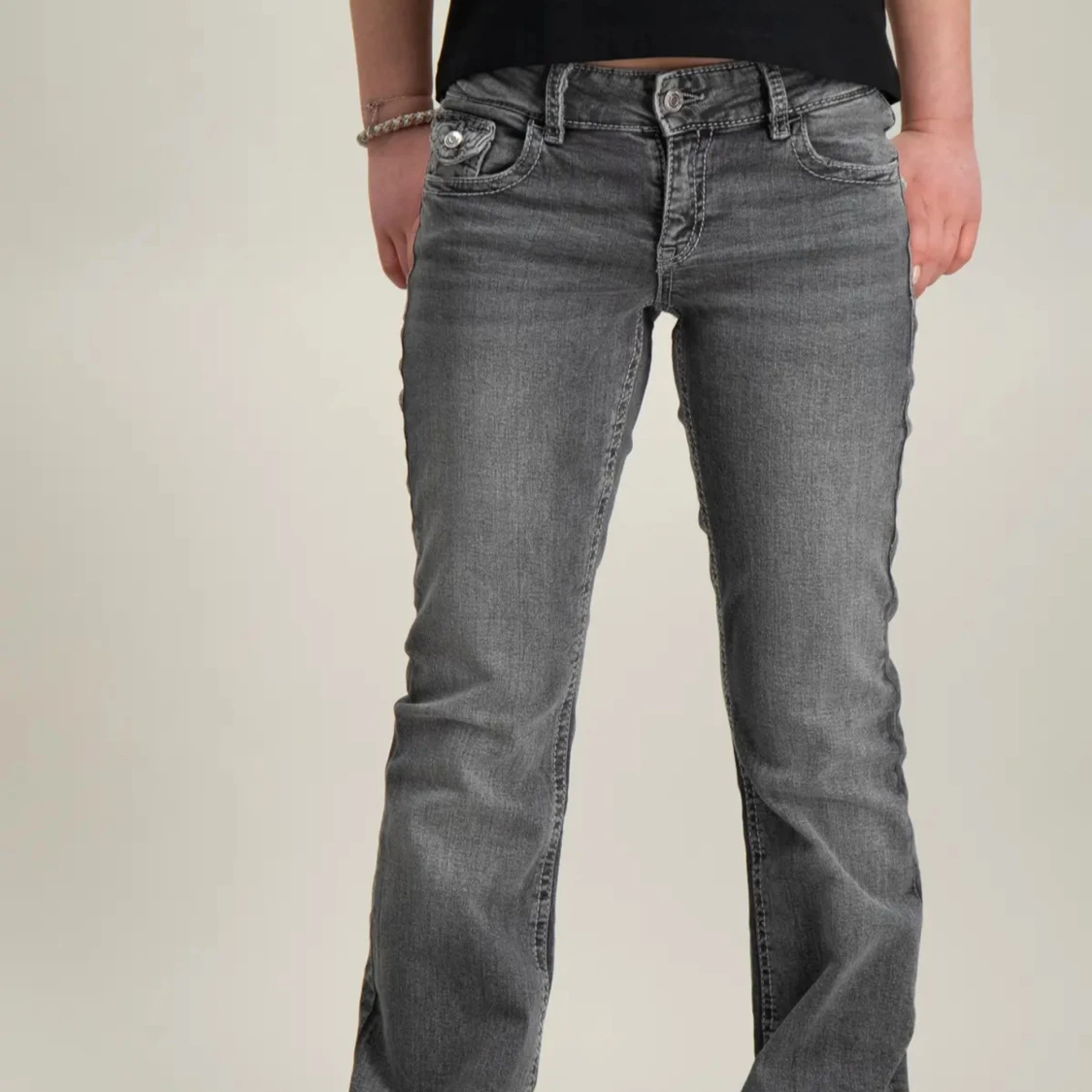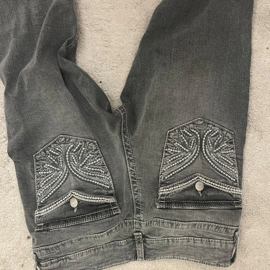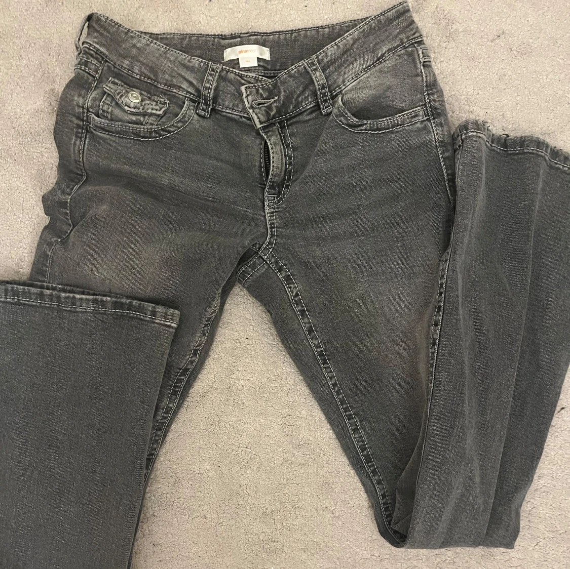 Superfina gråa bootcut jeans med broderade bakfickor. köptes för ett tag sen men aldrig kommit till användning 💗