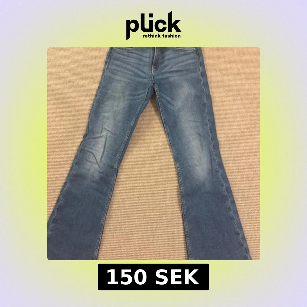 Snygga blå jeans med bootcut passform och coola broderade detaljer på bakfickorna. Jeansen är från ginatricot Young och säljs för att de inte kommer till användning längre!