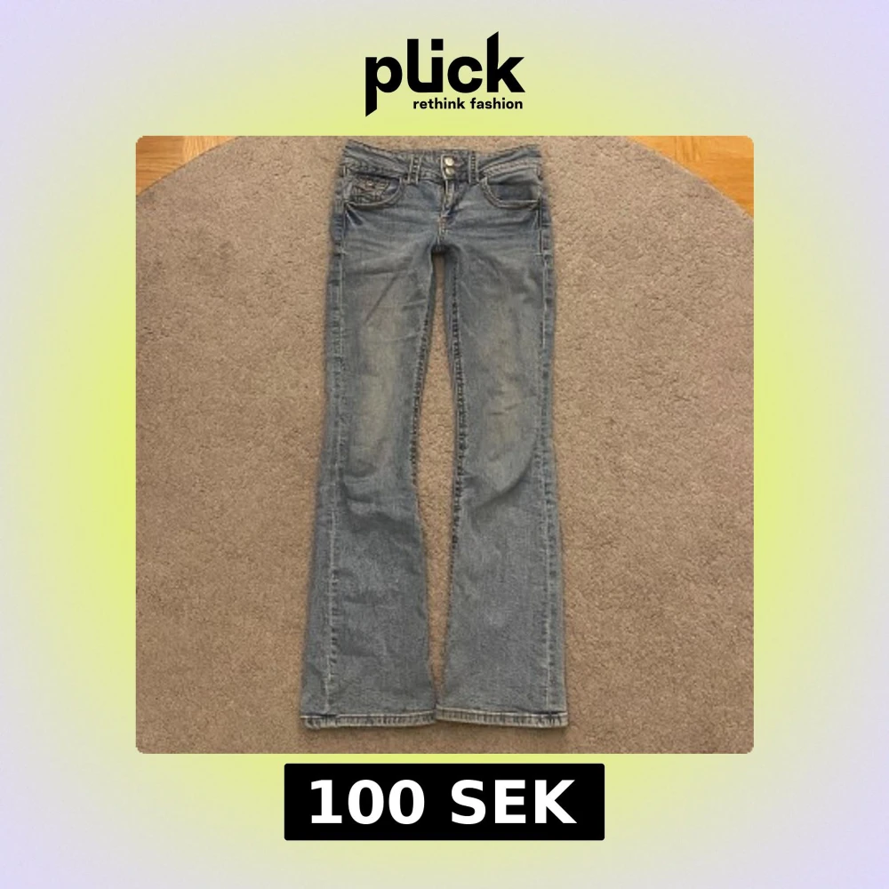 Snygga blå bootcut jeans från Gina Tricot. De har en klassisk femficksdesign och stängs med dragkedja och knappar💕