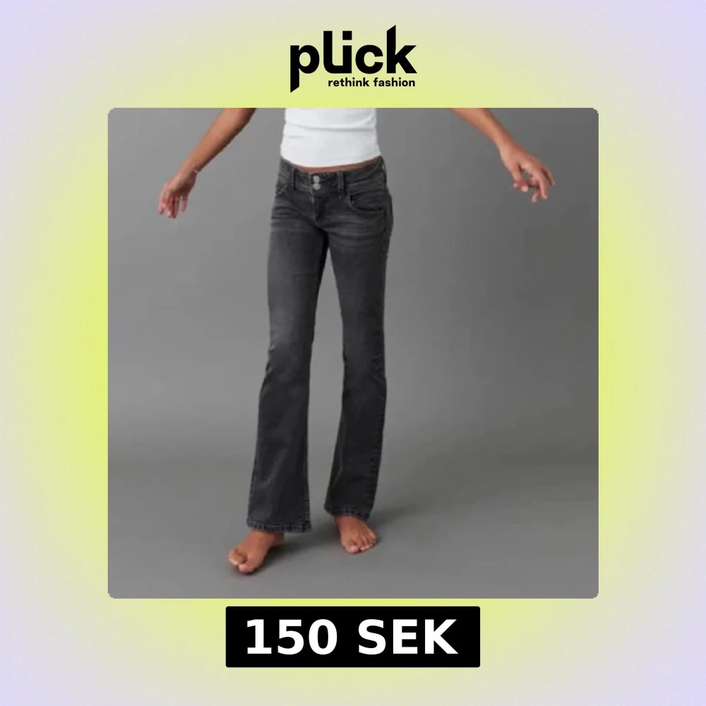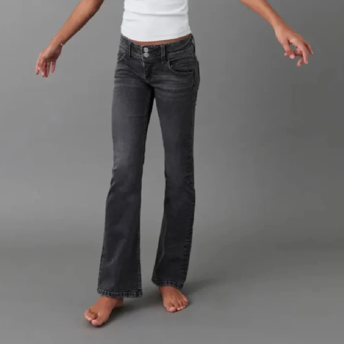 Snygga svarta jeans med bootcut-modell och låg midja. Jeansen har klassisk femficksdesign och är tillverkade i ett mjukt denimtyg som sitter skönt hela dagen. Perfekta för dig som gillar en tidlös och avslappnad stil.