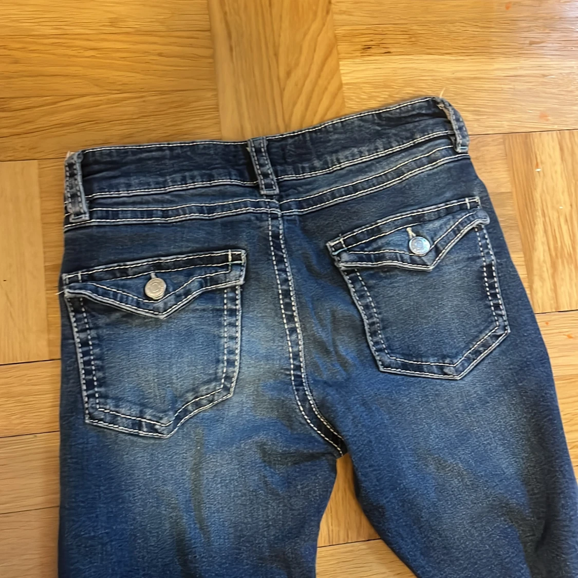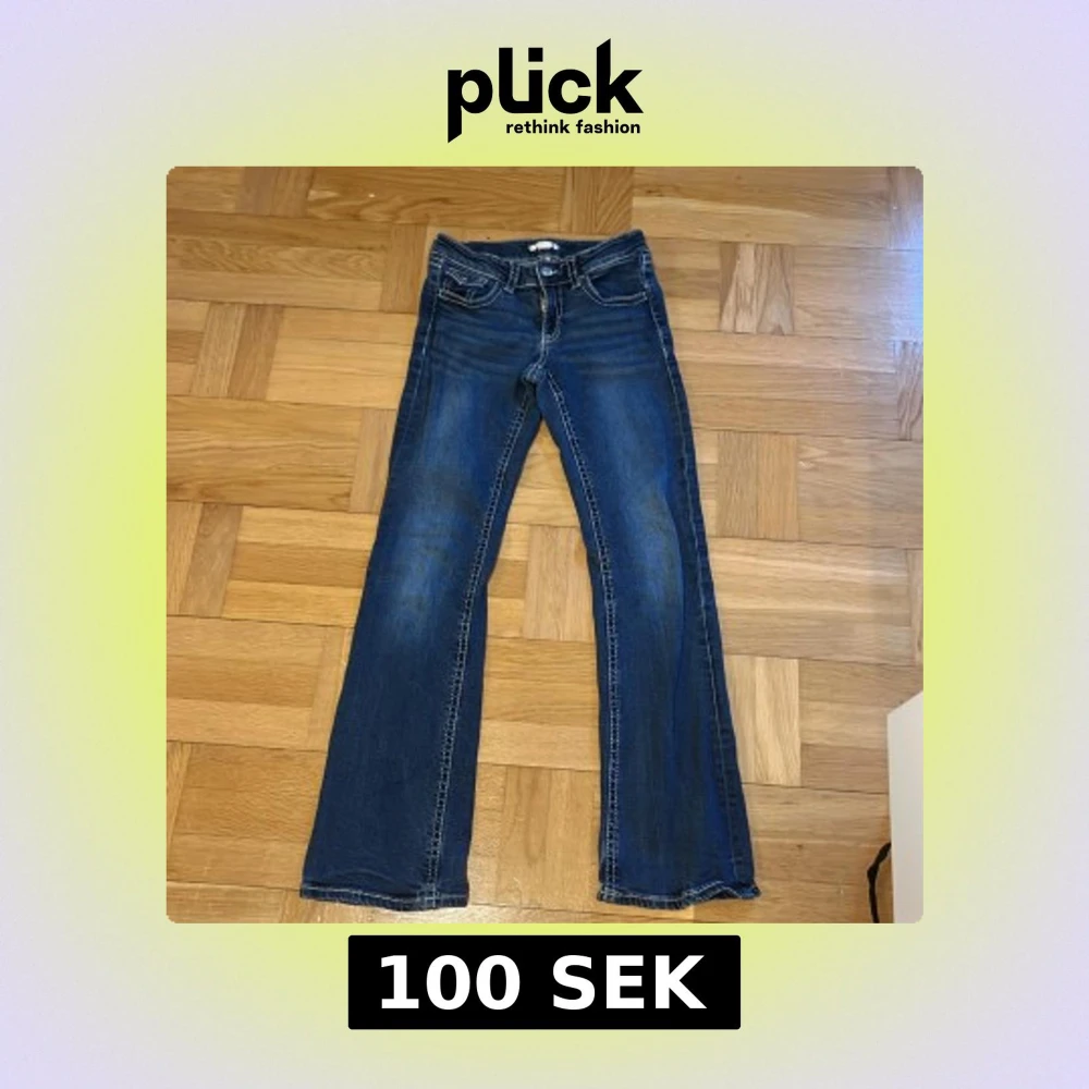 Snygga mörkblå jeans med bootcut passform och låg midja från Gina Tricot. Ny pris 400 men säljer för 100 då de är väl använda. Säljer för att de har blivit för korta för mig.