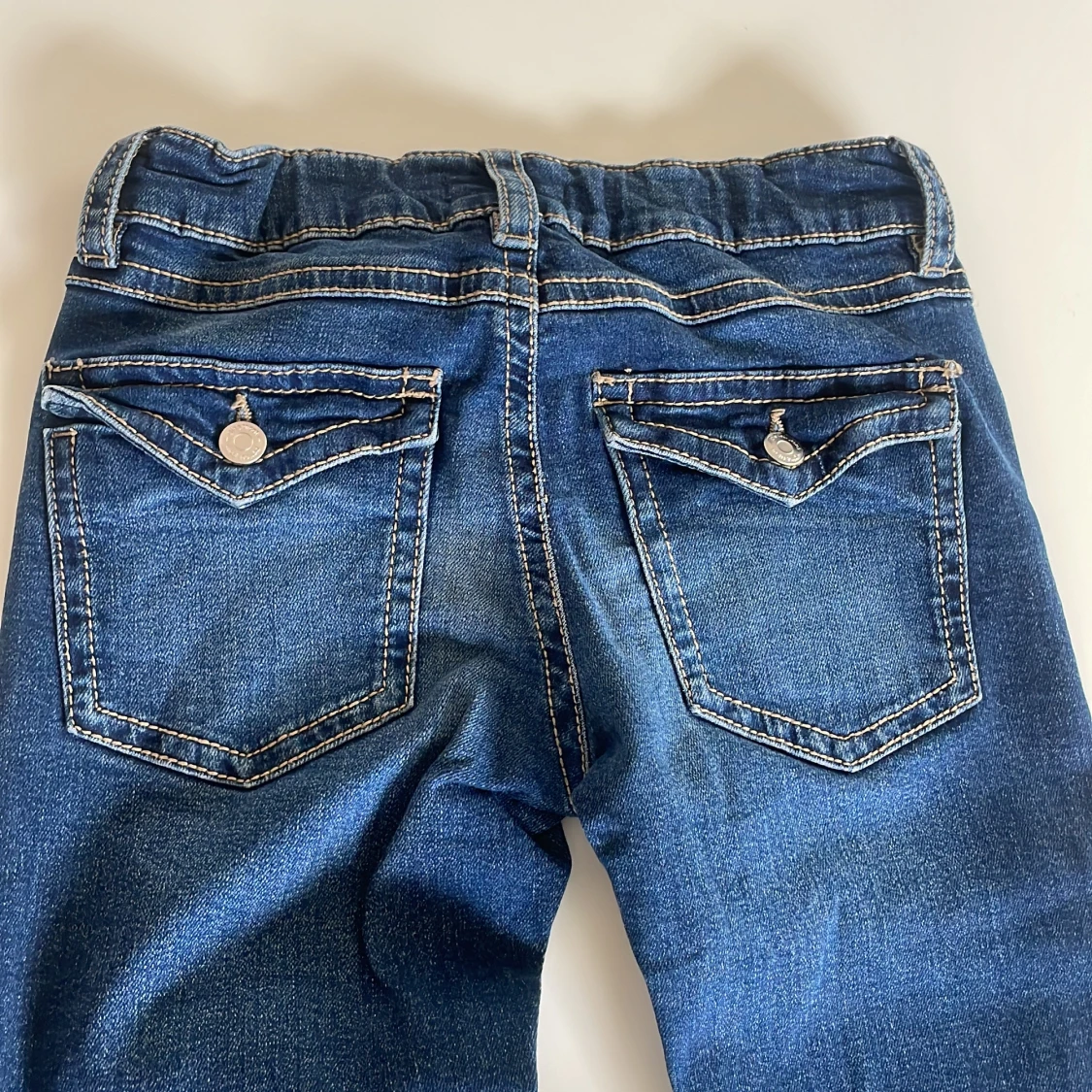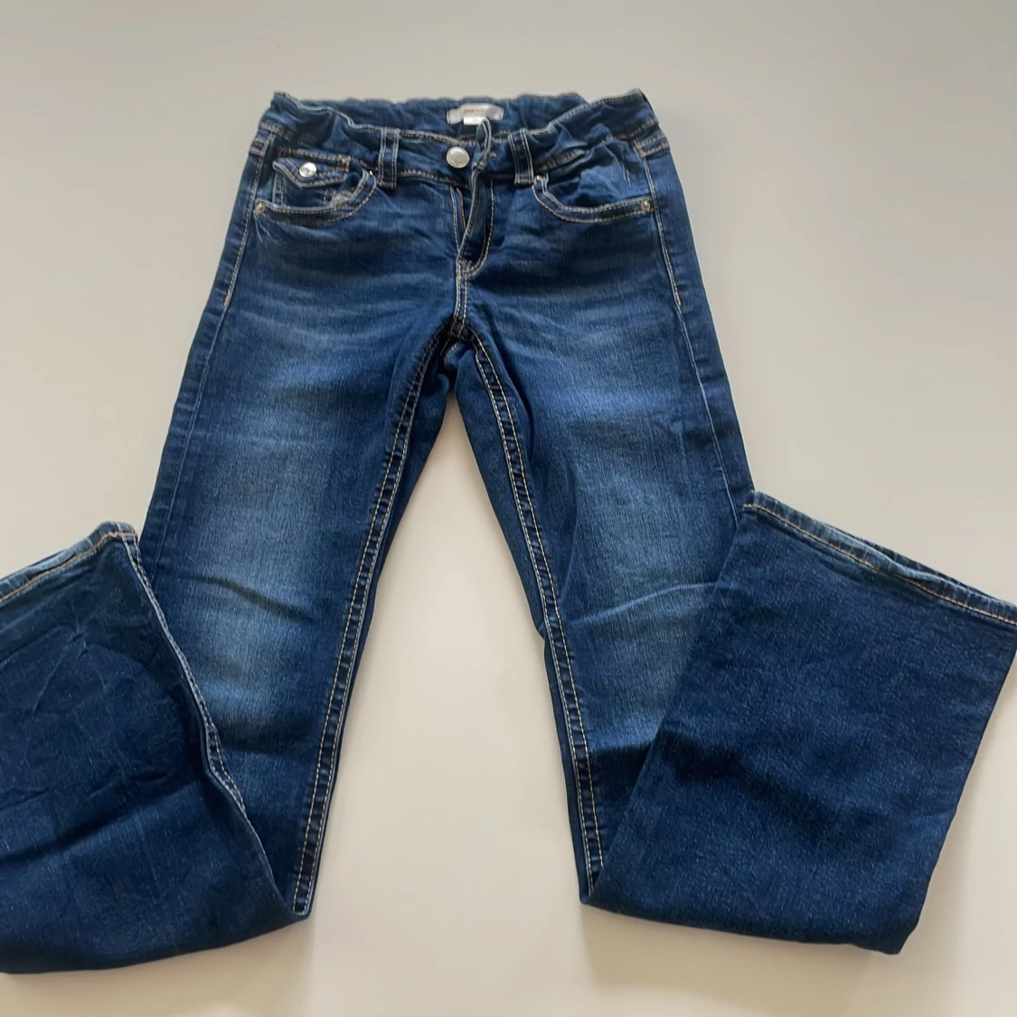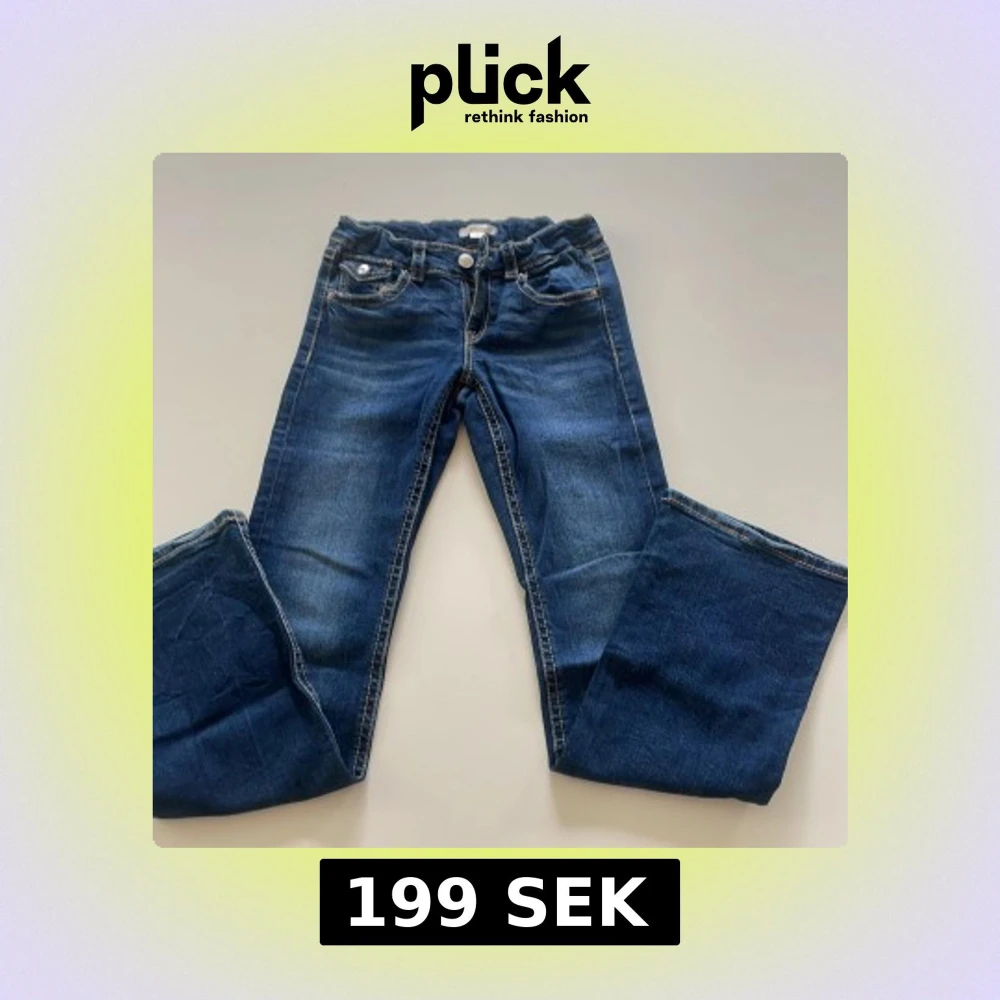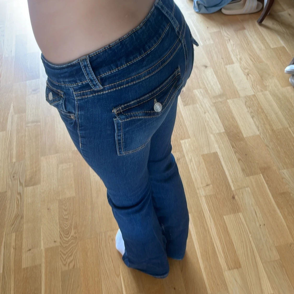 Snygga mörkblå jeans med bootcut och låg midja. Klassisk femficksmodell med kontrastsömmar och coola fickdetaljer bak. Jeansen har en lätt tvättad look och är perfekta för dig som gillar en avslappnad men trendig stil.