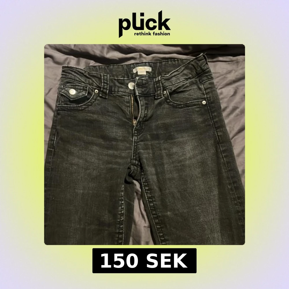 Snygga svarta jeans med lätt tvättad look och bootcut passform. Byxorna har fram- och bakfickor med lock och silverfärgade knappar. Klassisk dragkedja och bälteshällor. Perfekta för dig som gillar en stilren men edgy vibe.