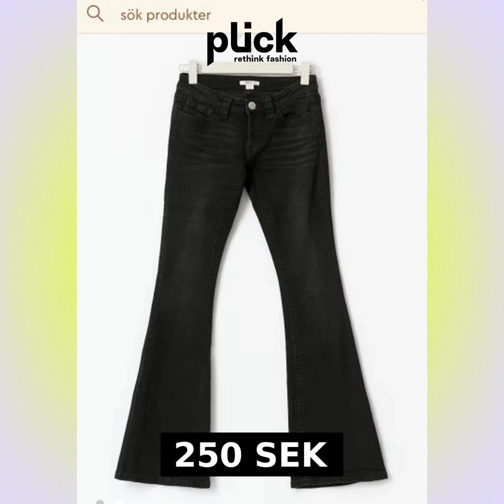 Snygga svarta jeans med bootcut från Gina Tricot. Modellen har låg midja och långa ben, perfekt för dig som gillar en klassisk siluett med lite utsvängda ben. Jeansen är tillverkade i stretchigt denim och har fem fickor samt knapp och dragkedja framtill. Kommer inte till användning, för små för mig