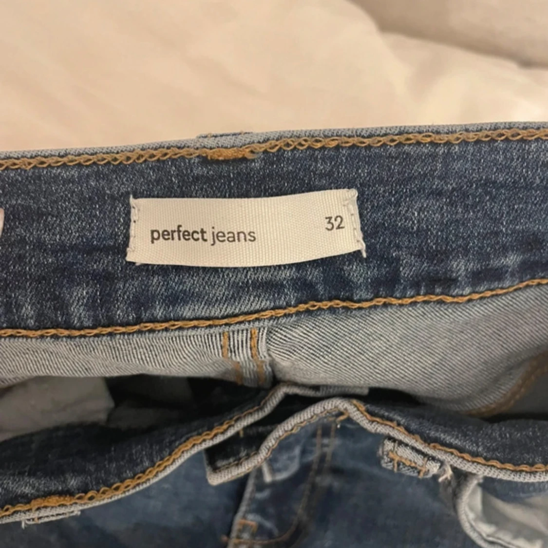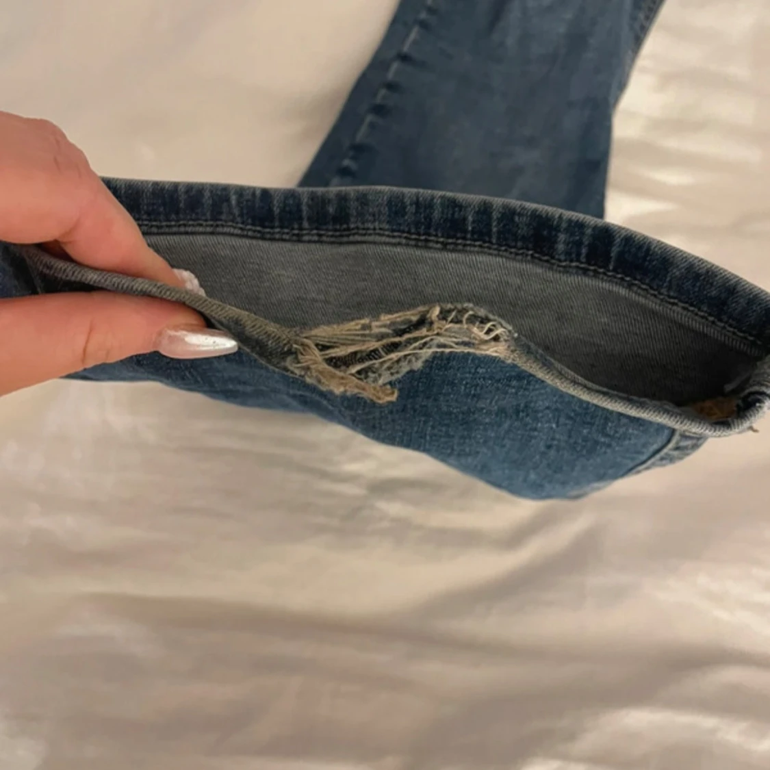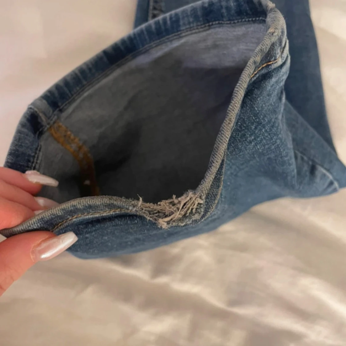 Mörkblå Lågmidjade jeans ifrån Gina tricot, de är lite slitna längst ner vilket syns på bilderna men är annars i väldigt bra skick