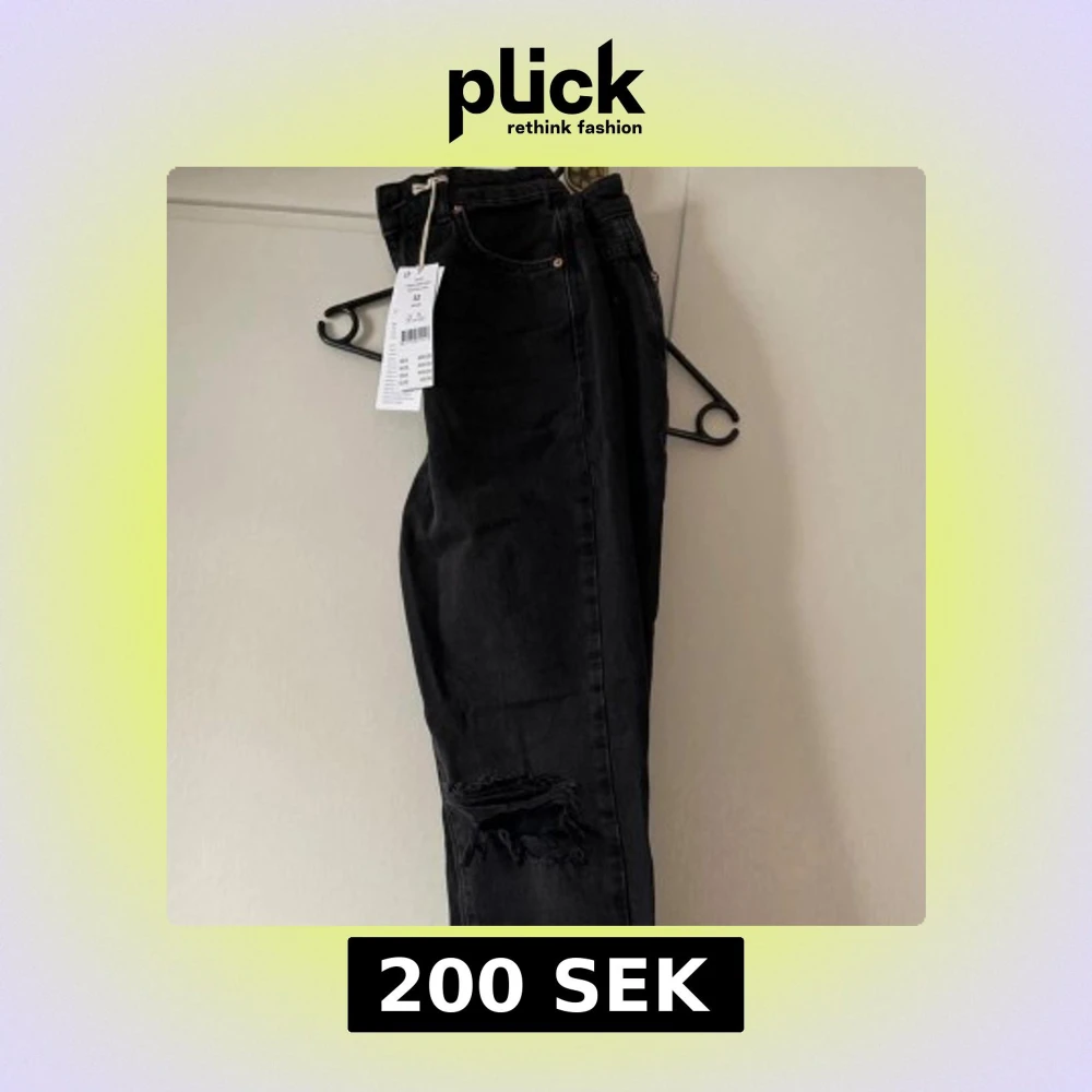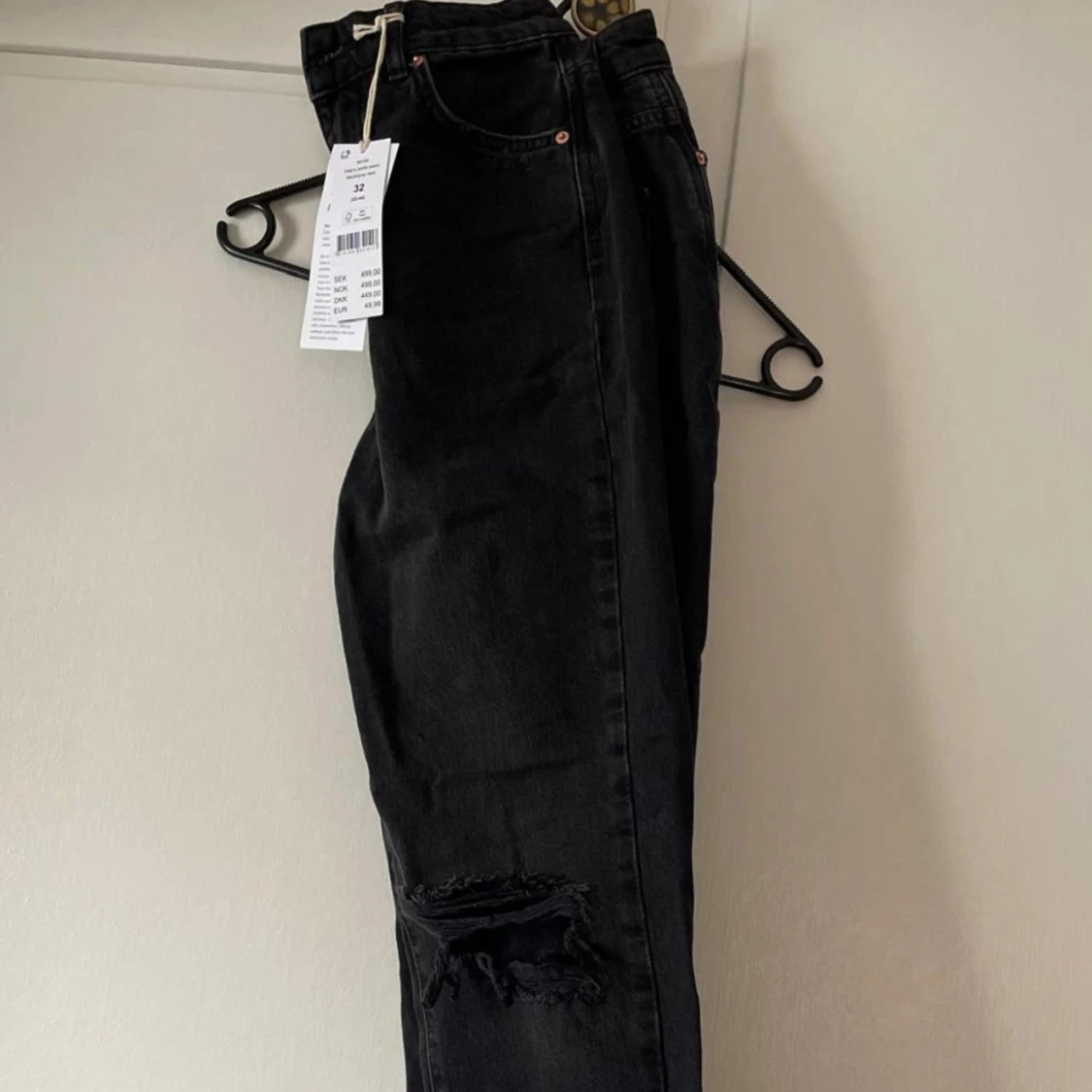 Snygga svarta jeans med slitningar på knäet. Svarta jeans i storlek 32. Helt nya med lappen kvar
