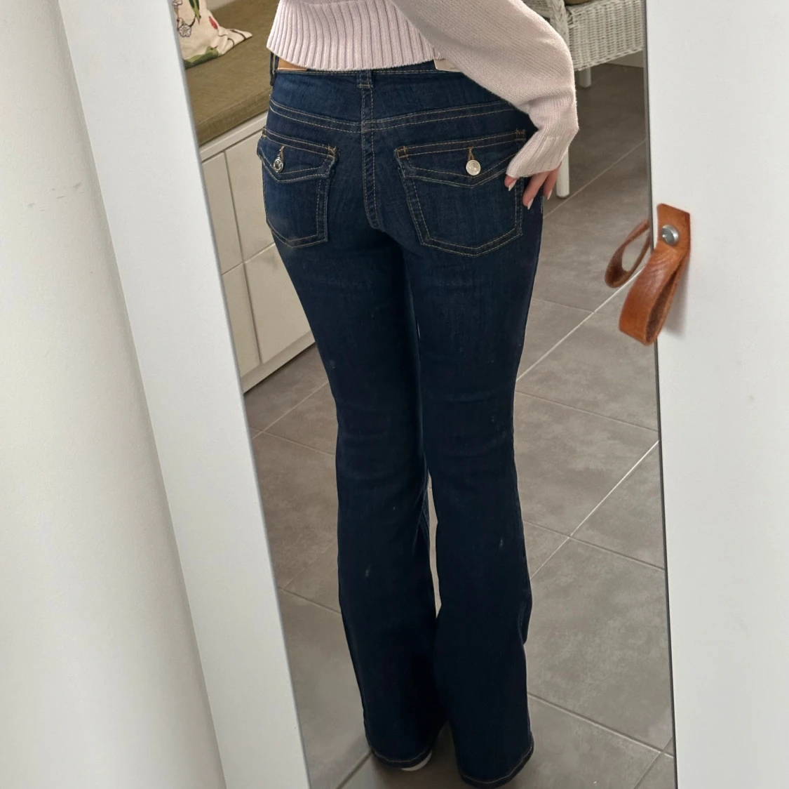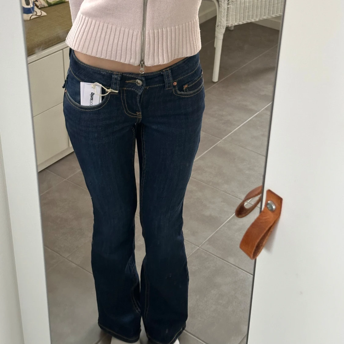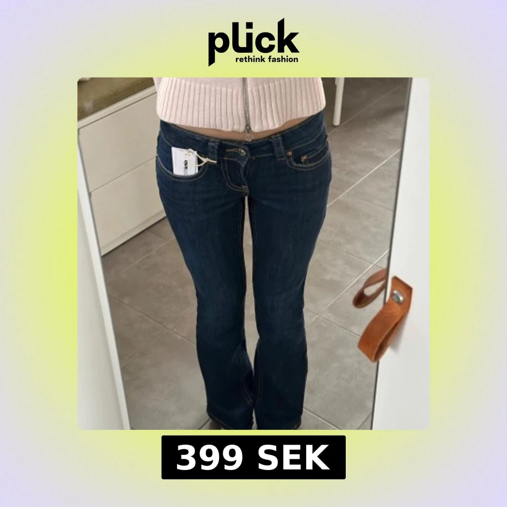 Helt nya lågmidjade jeans från ginatricot med prislappen kvar💕 midjemått 68 cm, men passar mig med 74-78 cm där byxorna sitter, innerbensläng 80cm 💕💕 ordinarie pris 499kr