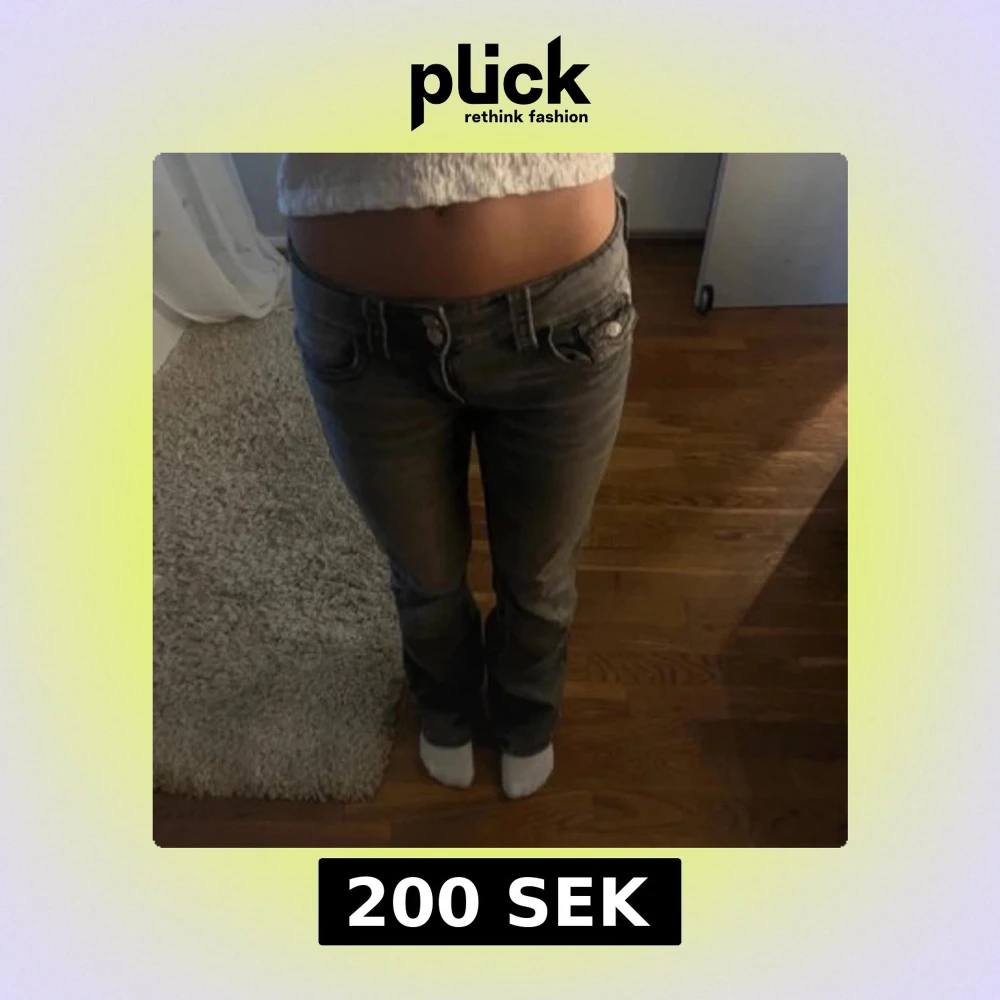 Snygga grå jeans med låg midja och bootcut från Gina tricot. Passar mig som 160 cm . Dem är använda med bra omhändertagna🤍🤍