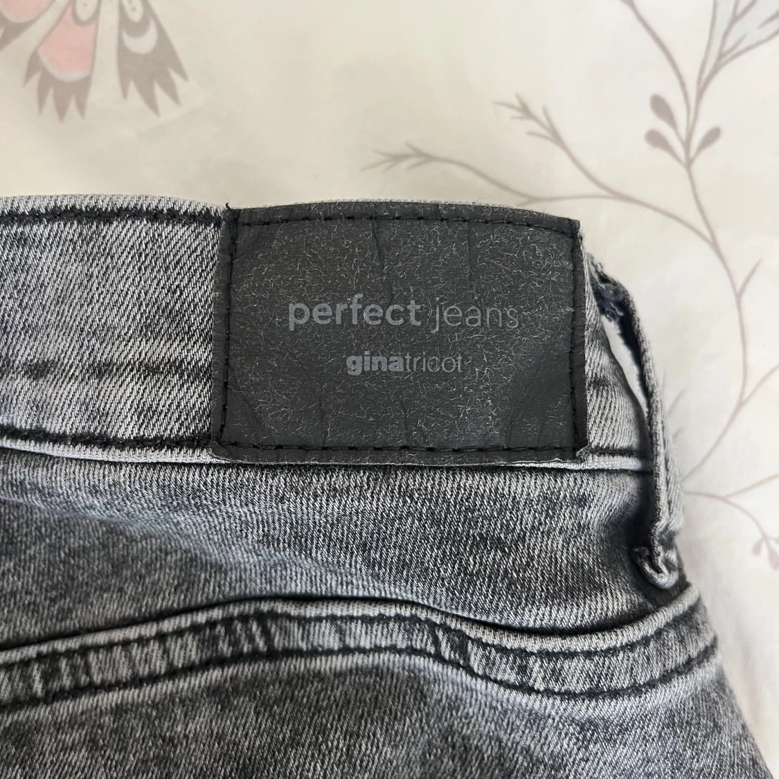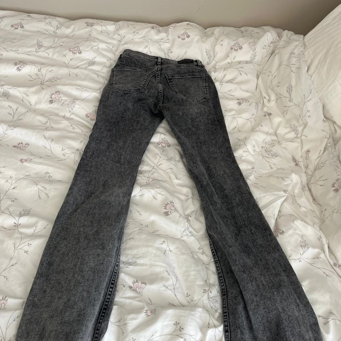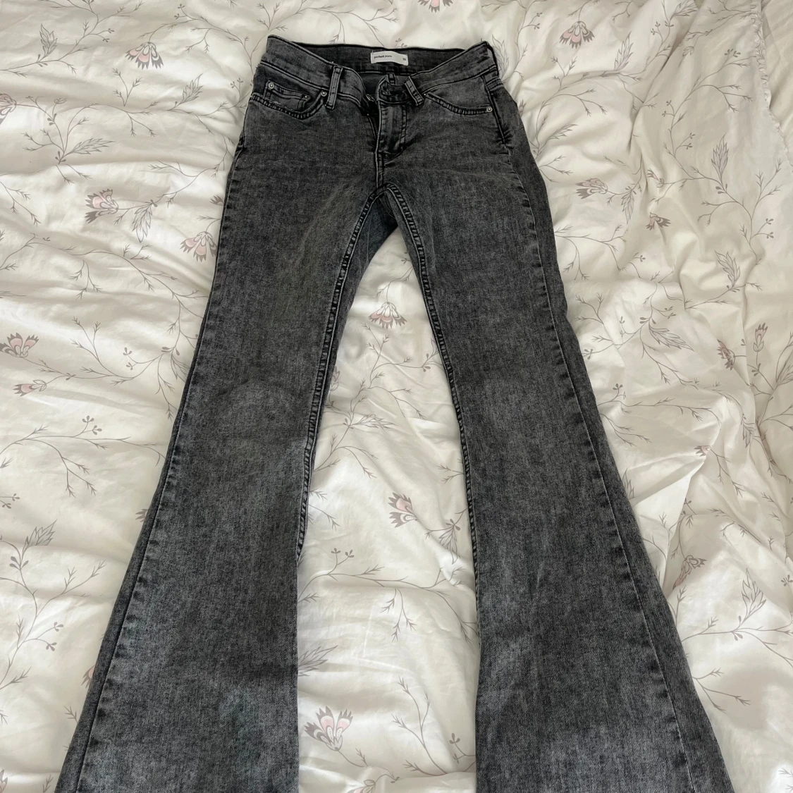 Säljer ett par snygga grå bootcut jeans från Gina Tricot. Jeansen har en klassisk femficksmodell, medel midja och är tillverkade i stretchig denim för skön passform. Perfekta till sneakers eller boots för en cool vardagslook.
