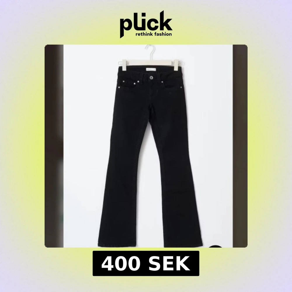 Snygga svarta jeansbyxor med bootcut-snitt och klassisk femficksdesign. Byxorna har en stilren look och är perfekta för dig som gillar en tidlös och trendig stil. Passar till allt och är lätta att matcha med olika outfits. Jeansen har fickor där back som man kan knäppa. Pris kan diskuteras