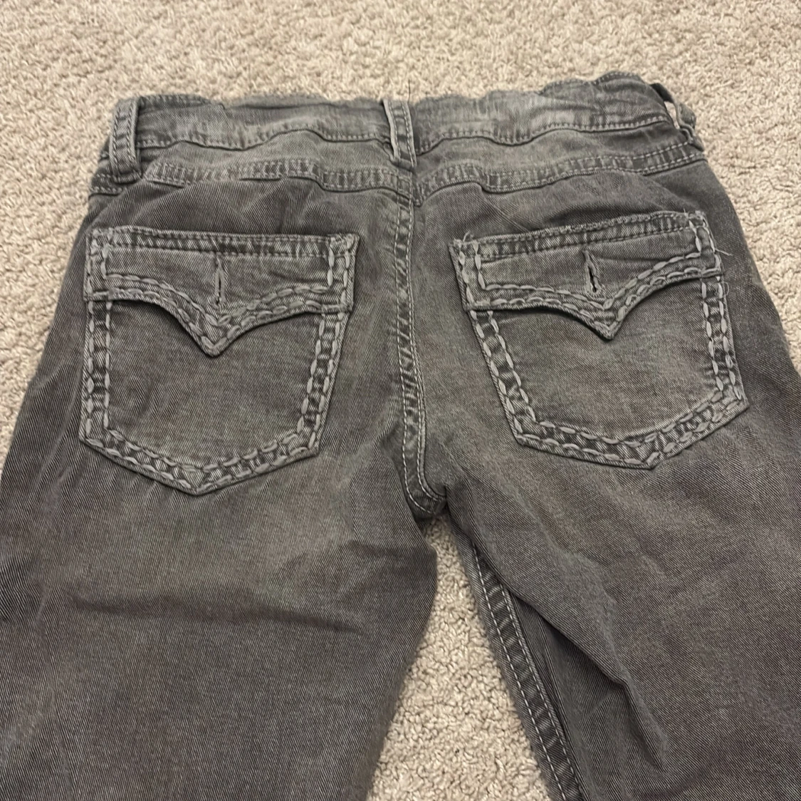Grå jeans med broderade bakfickor