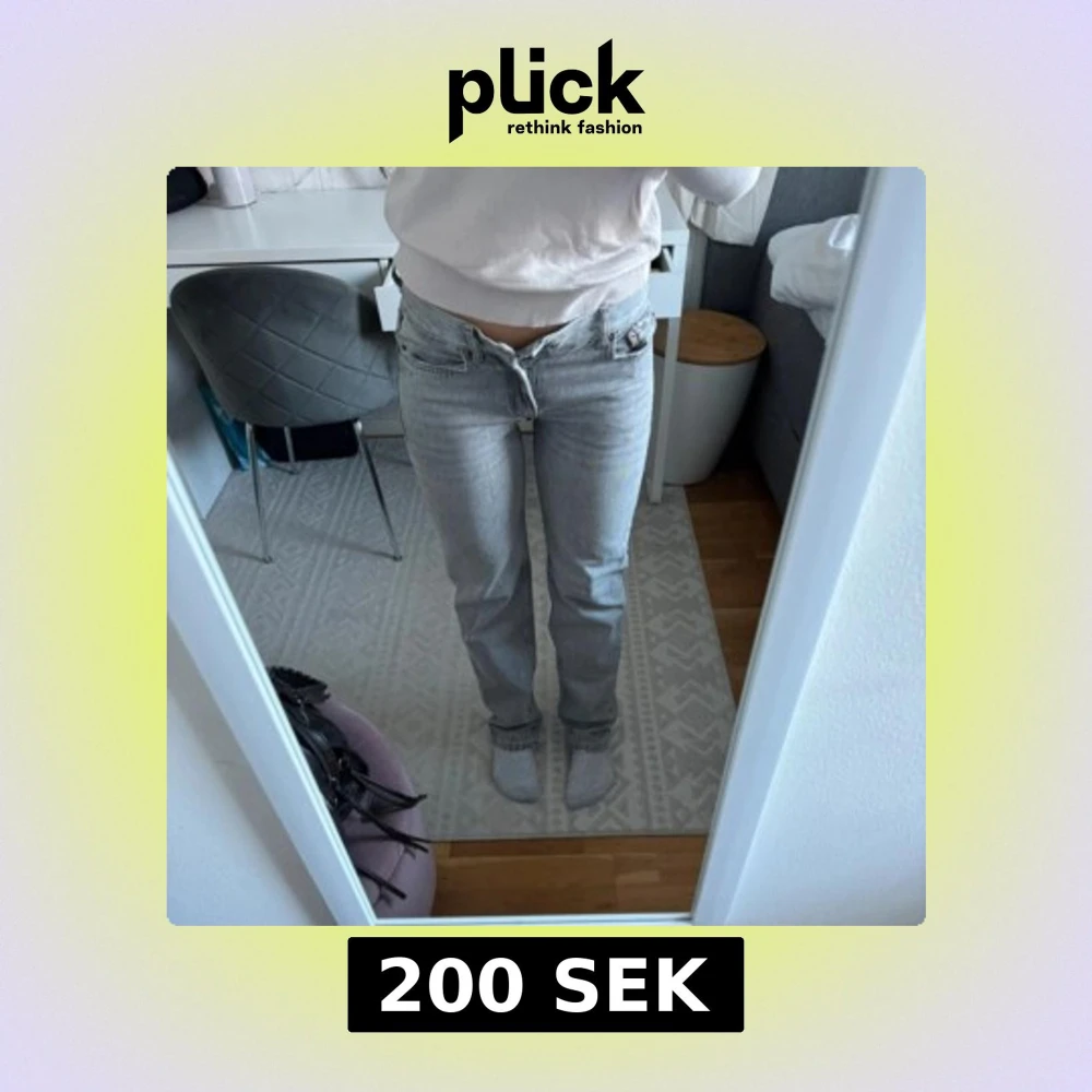 Säljer ett par ljusgrå jeans med rak passform och klassisk femficksdesign. Byxorna har normal midja och stängs med dragkedja och knapp. Perfekta till vardags för en avslappnad stil.