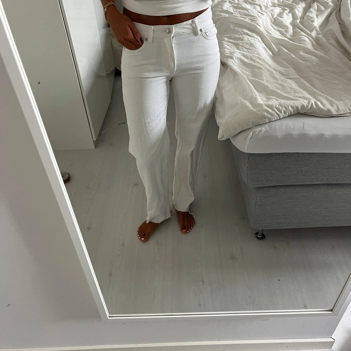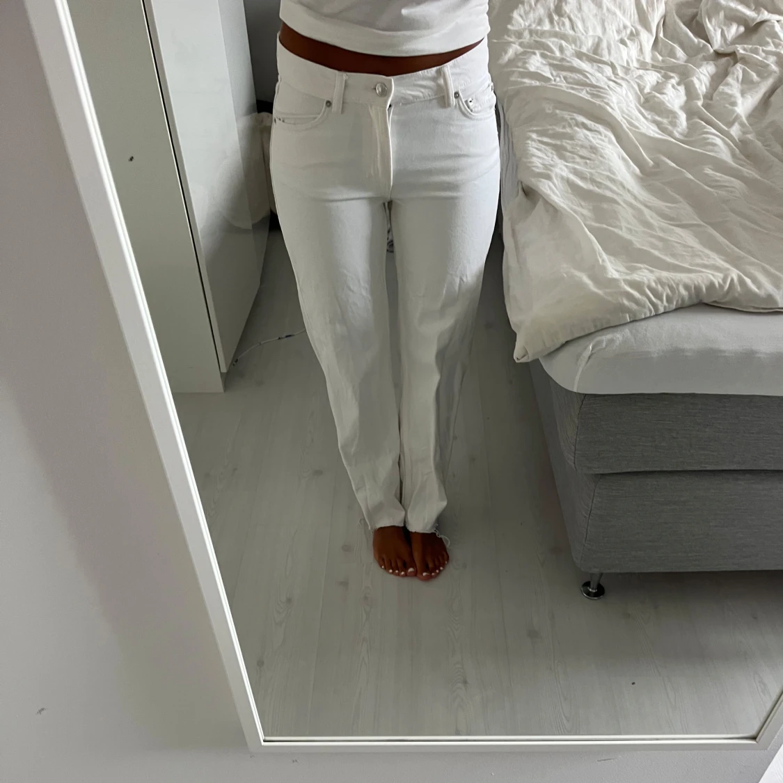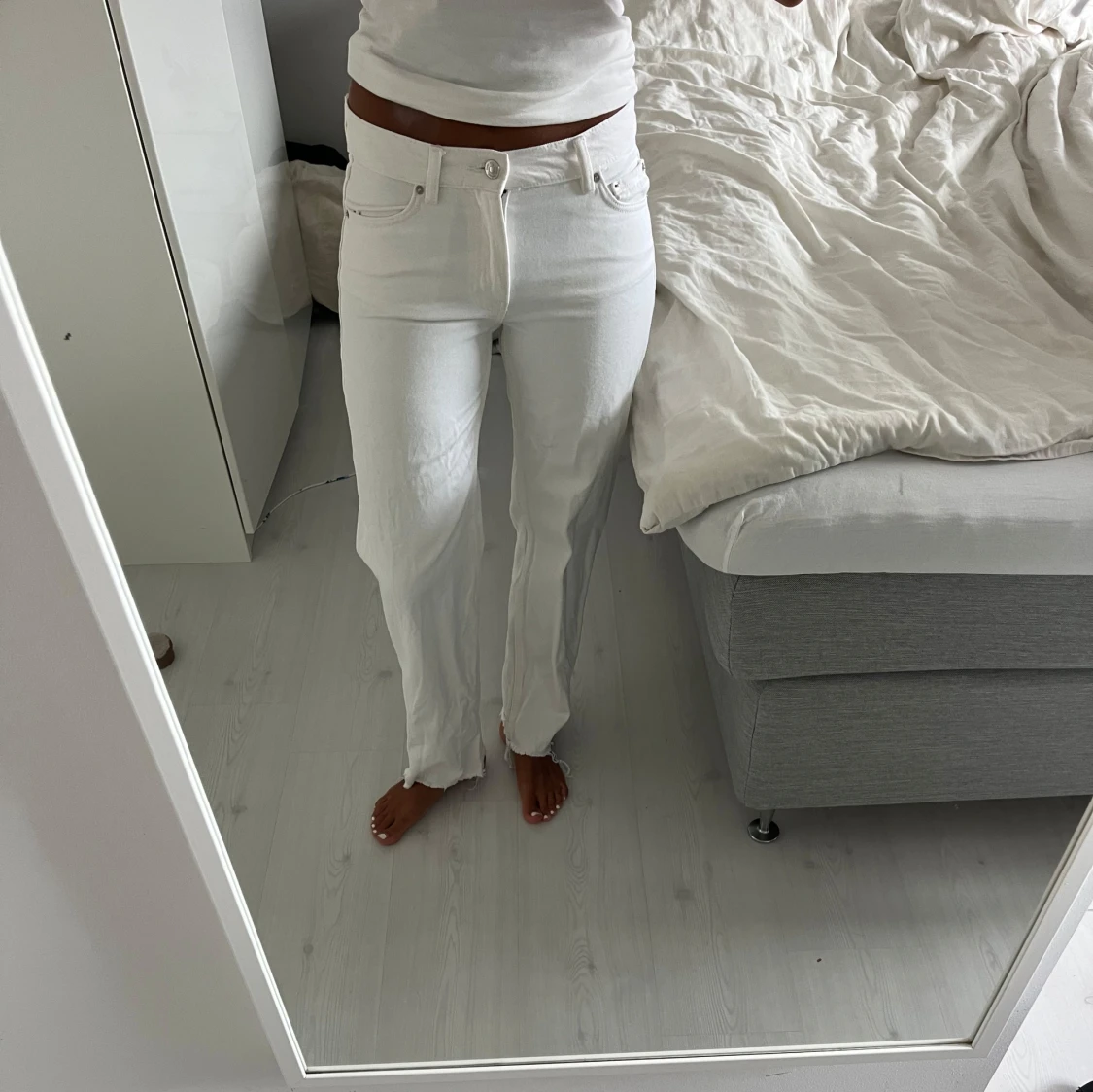 Vita lĂ„gmidjade jeansđ€lite korta pĂ„ mig som Ă€r 164 cm