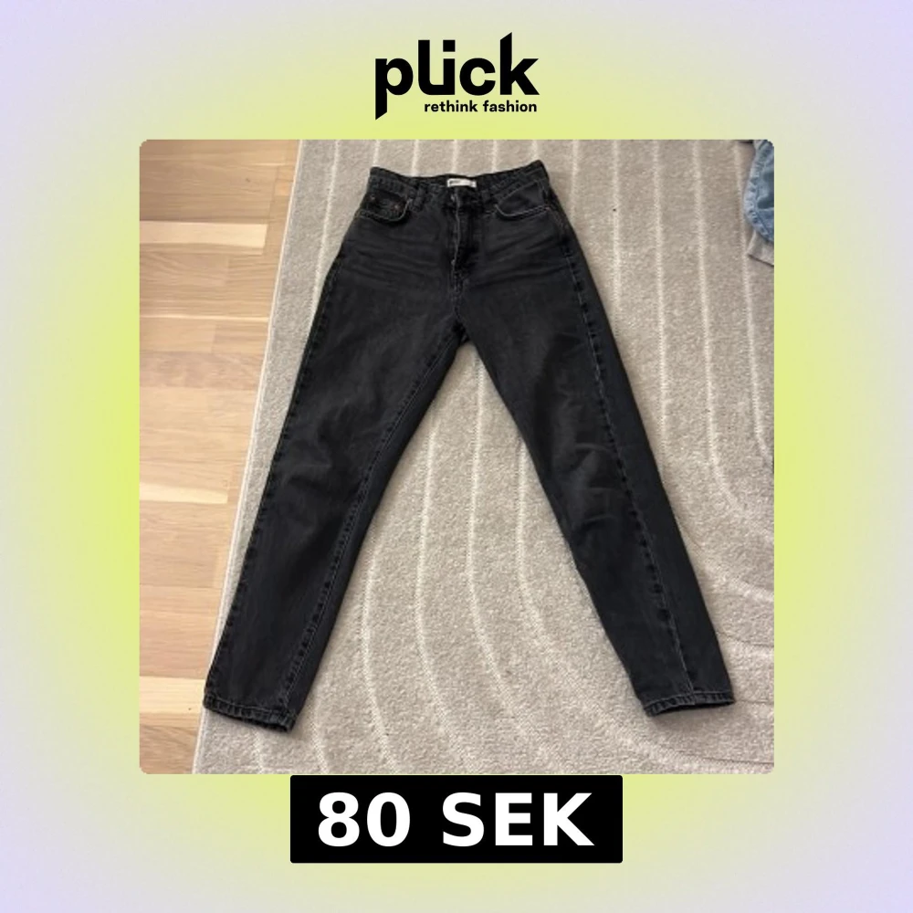 Svarta jeansbyxor med en rak passform. Från Gina tricot och är mid waist. Jag är 157 och jag säljer för att jag inte längre får på mig dom. (Det är ganska smala i passformen)