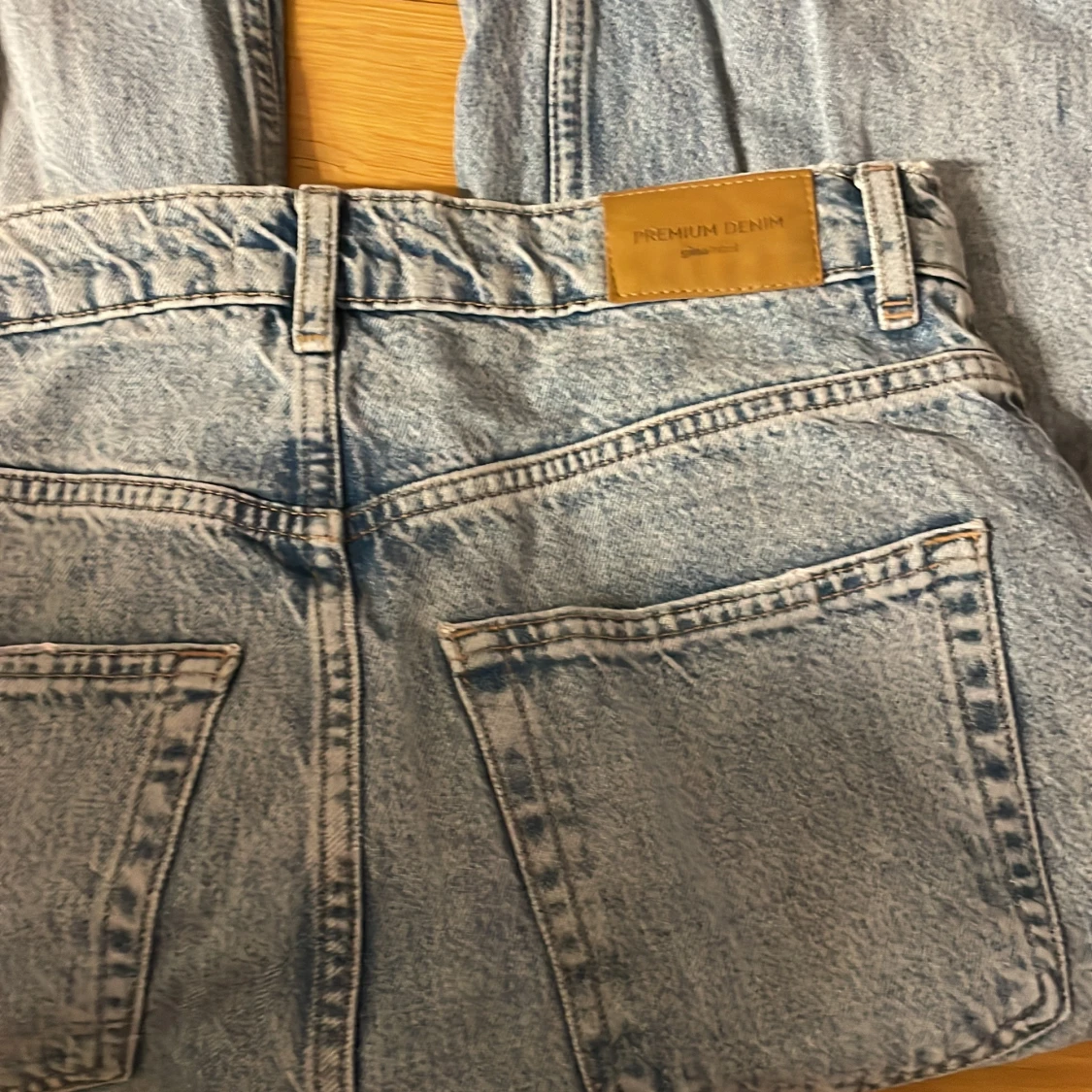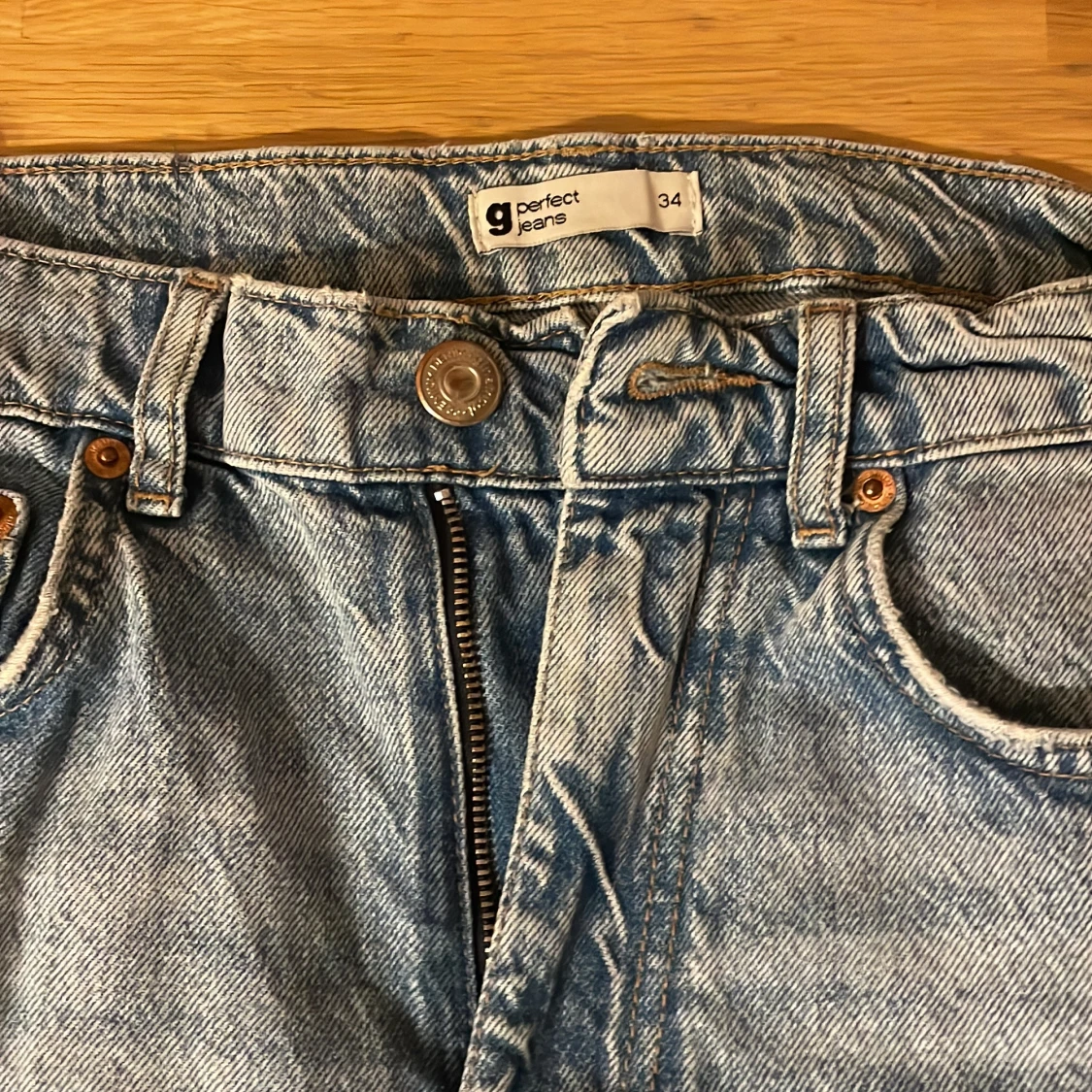 femficksdesign och dragkedja. Jeansen har en straight passform och är tillverkade i denim. Högmodjad Storlek 34