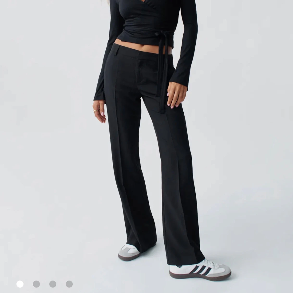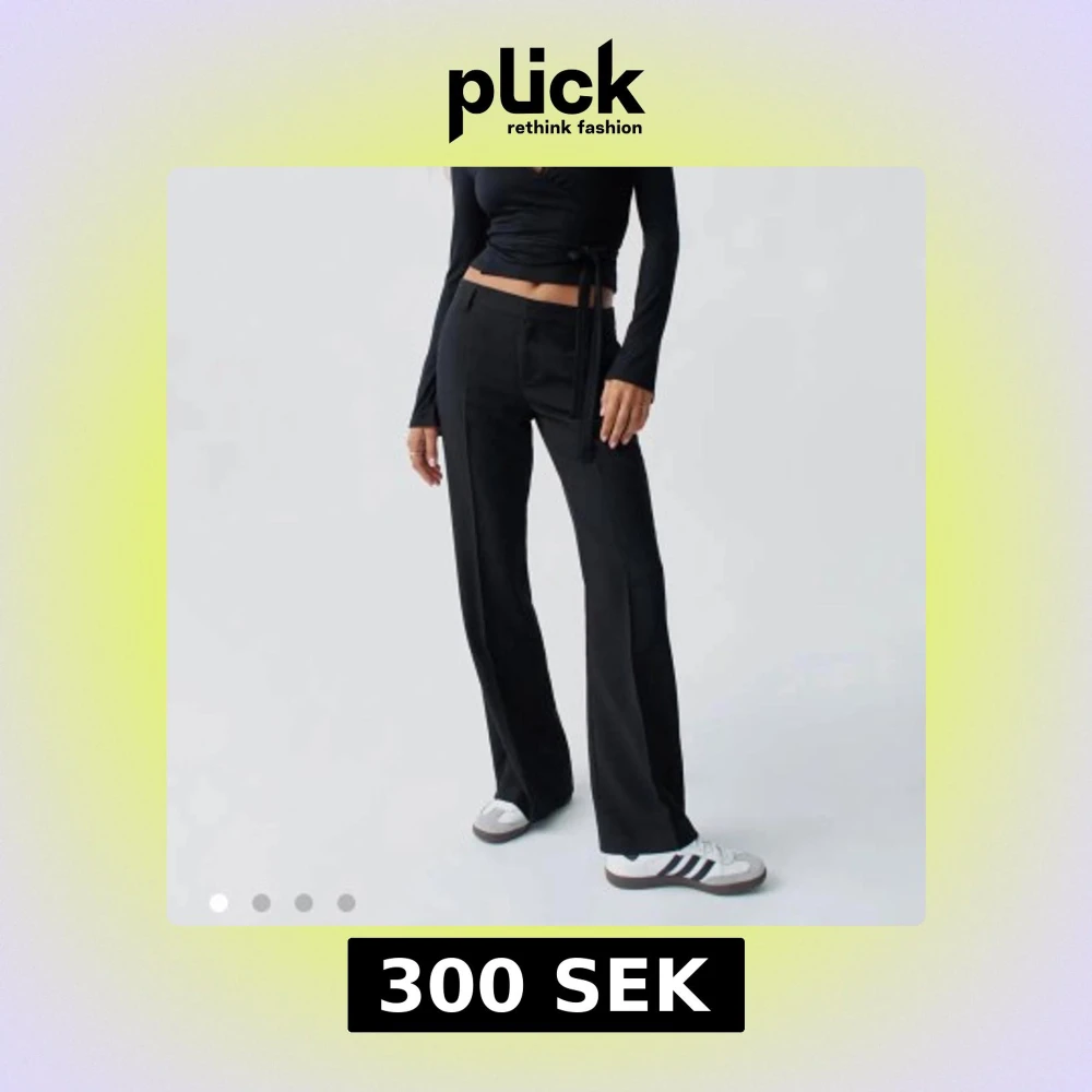 Snygga svarta kostymbyxor med raka, vida ben. Klassisk look med pressveck och diskreta fickor. Endast testade, aldrig använda. Lappen sitter kvar.
