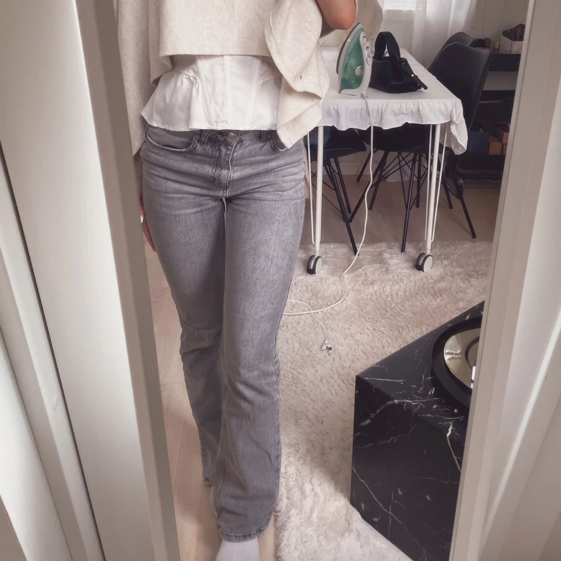 Grå bootcut jeans midrise