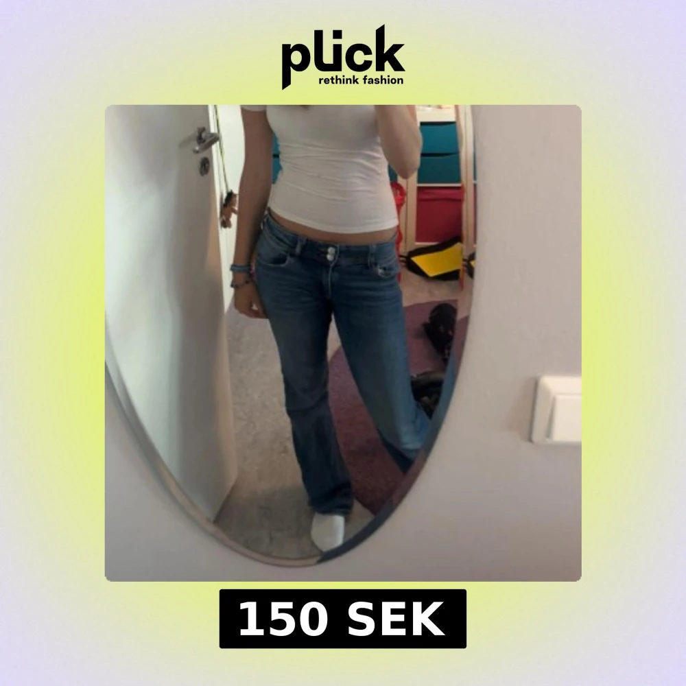 Säljer ett par klassiska blå jeans med bootcut och låg midja. Jeansen har en snygg tvätt och sitter skönt på höften. Perfekta för dig som gillar en avslappnad men trendig look. Två fickor där bak. Storlek 164 men passar som Xs