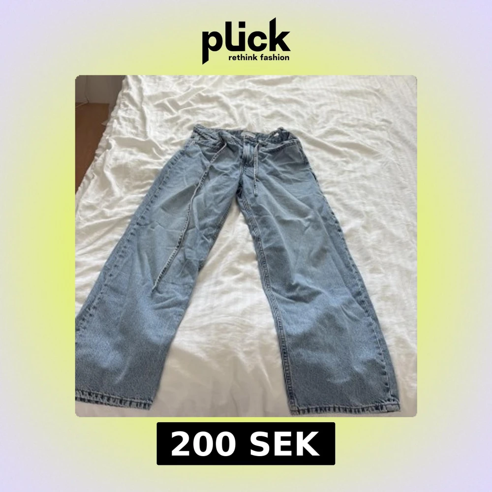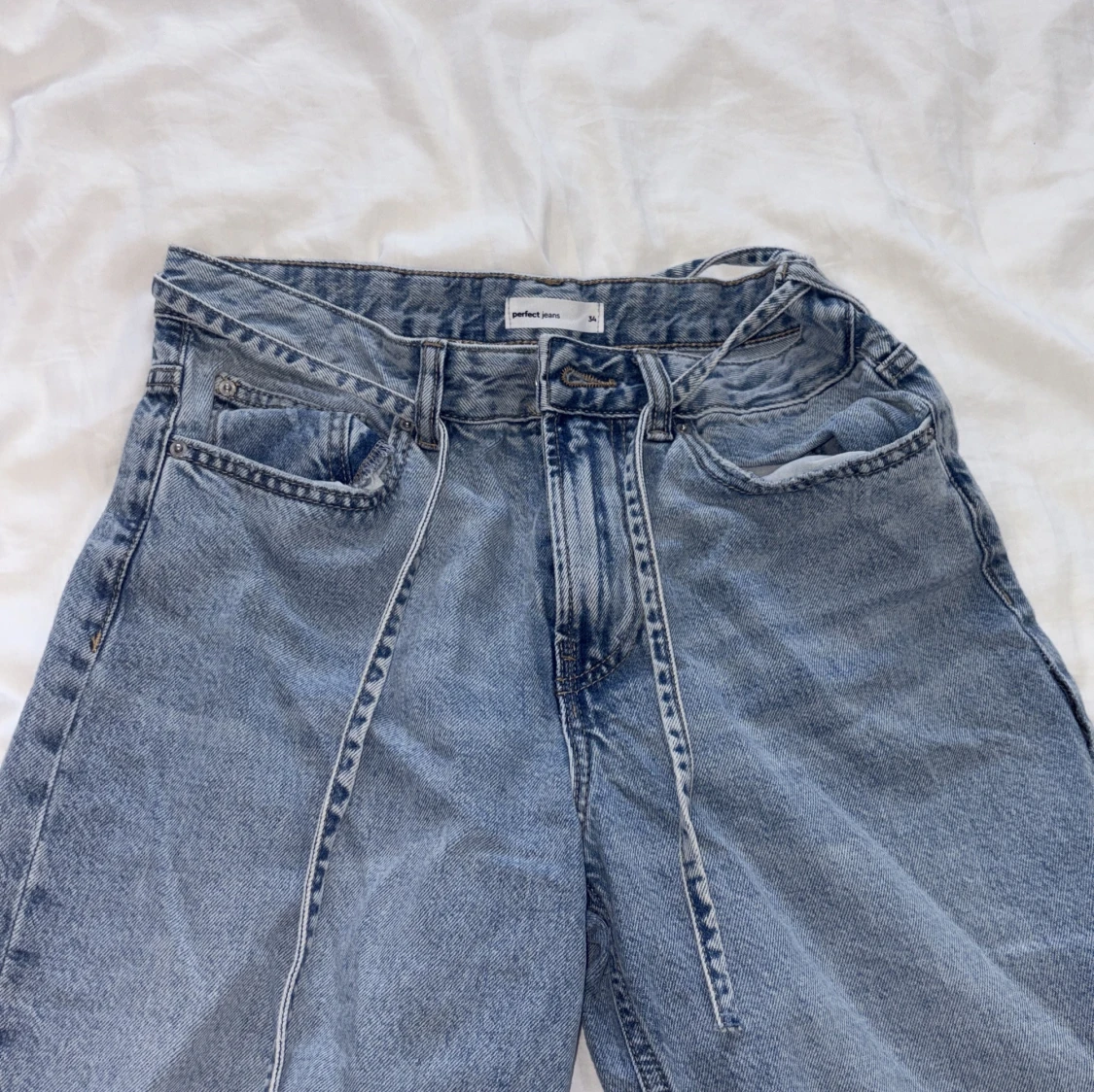 Säljer ett par ljusblå wide jeans från Gina Tricot i storlek 34. Byxorna har hög midja, raka och vida ben samt coola sömdetaljer framtill. Klassisk femficksmodell och tillverkade i bomull. Perfekta för en avslappnad och trendig look.