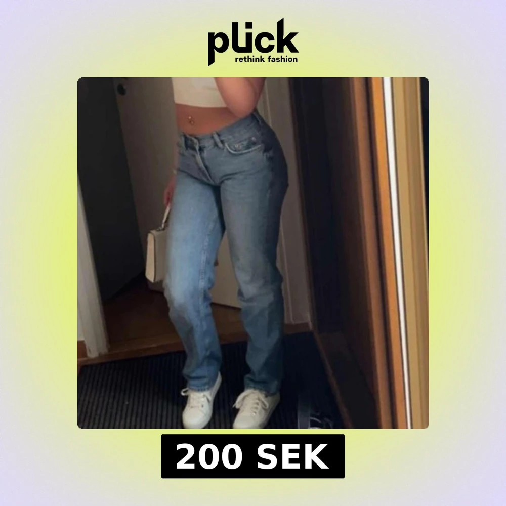 Säljer ett par klassiska ljusblå jeans från gina med rak passform och normal midja. Jeansen har fem fickor, knappgylf och är tillverkade i slitstarkt denim. Perfekta till sneakers och crop top för en chill look.