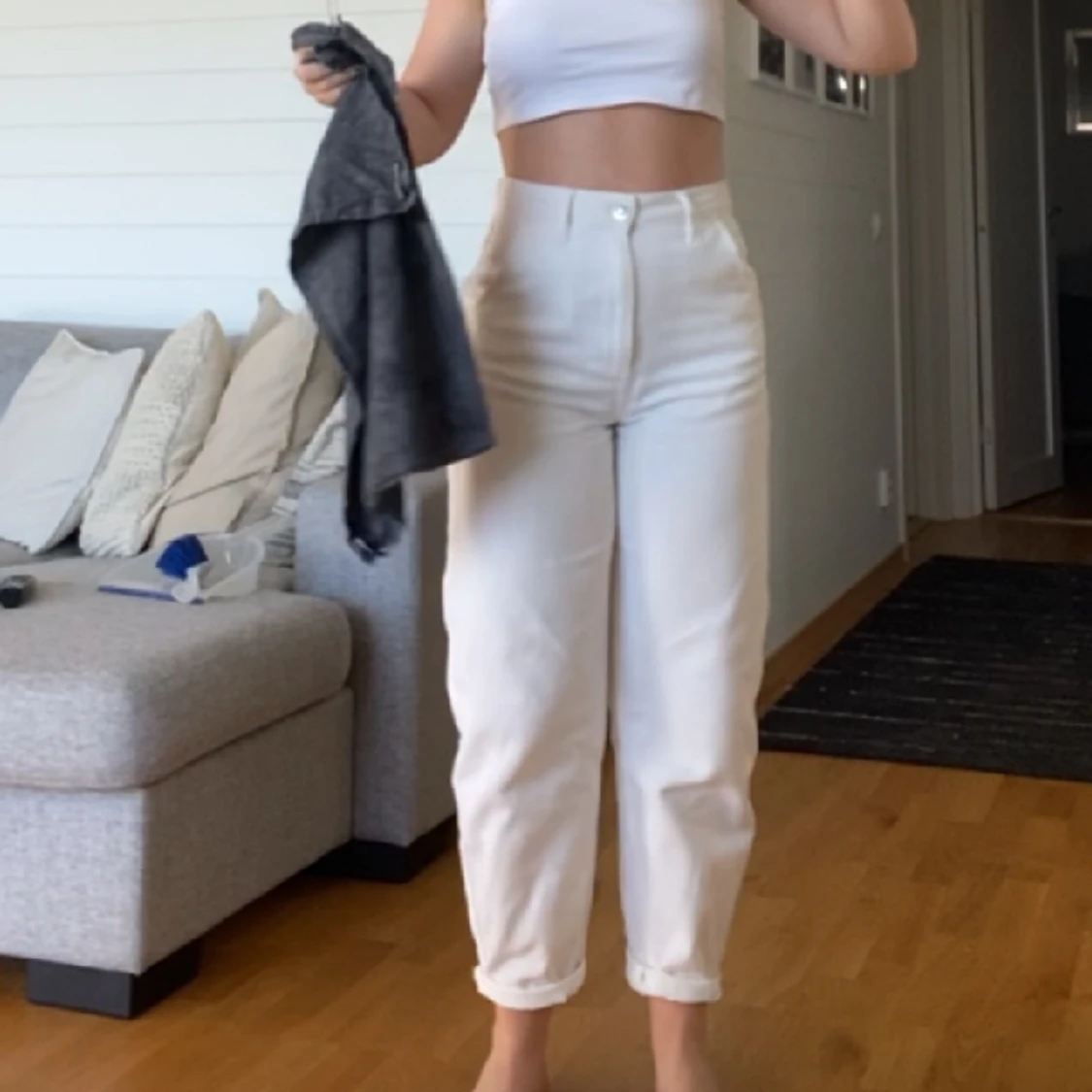 Vita jeans från Gina tricot. Använda två gånger. Lite "ballong" i modellen. Jag är en 36 men de är 34 i jeansen.