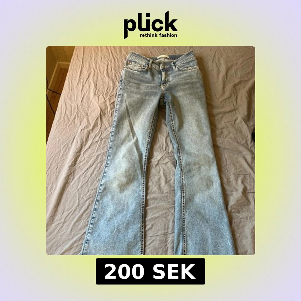 Snygga mid waist bootcut jeans från gina tricot i storlek 34. De är använda fåtal gånger vilket gör att de fortfarande är i väldigt bra skick.