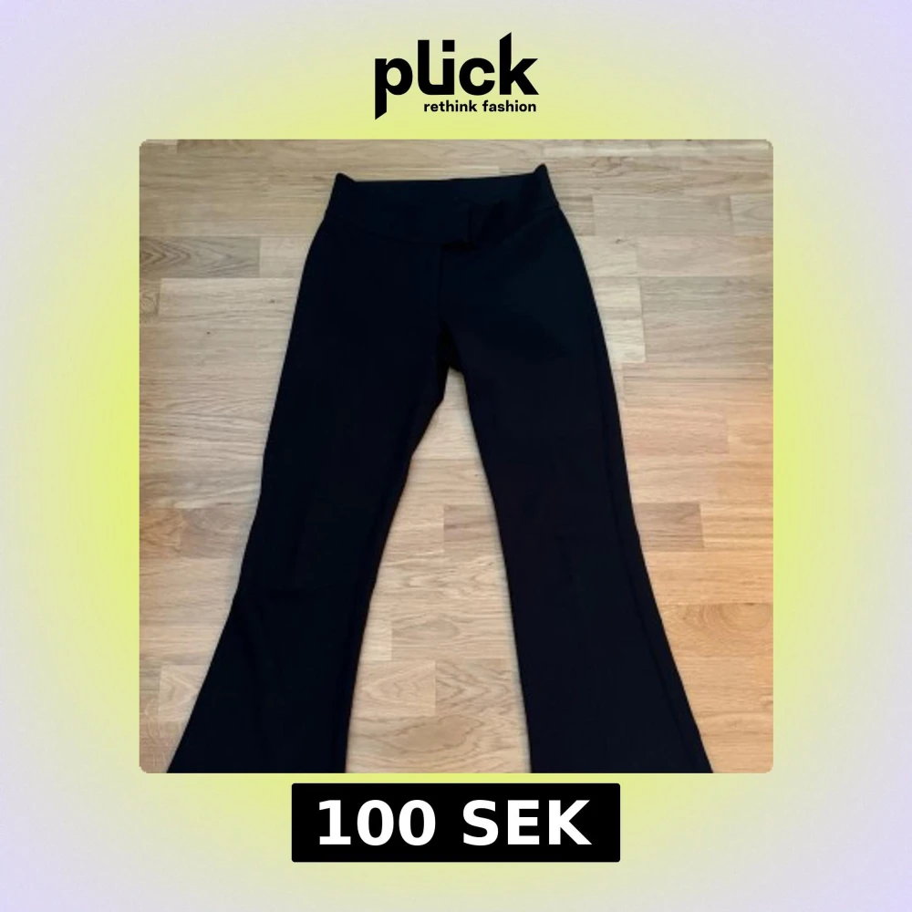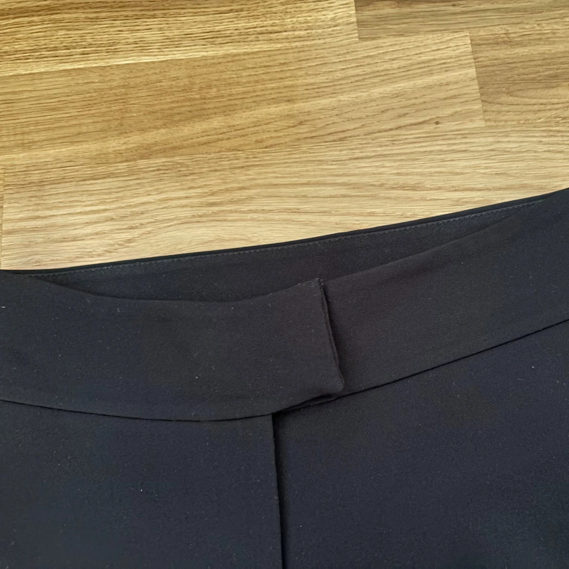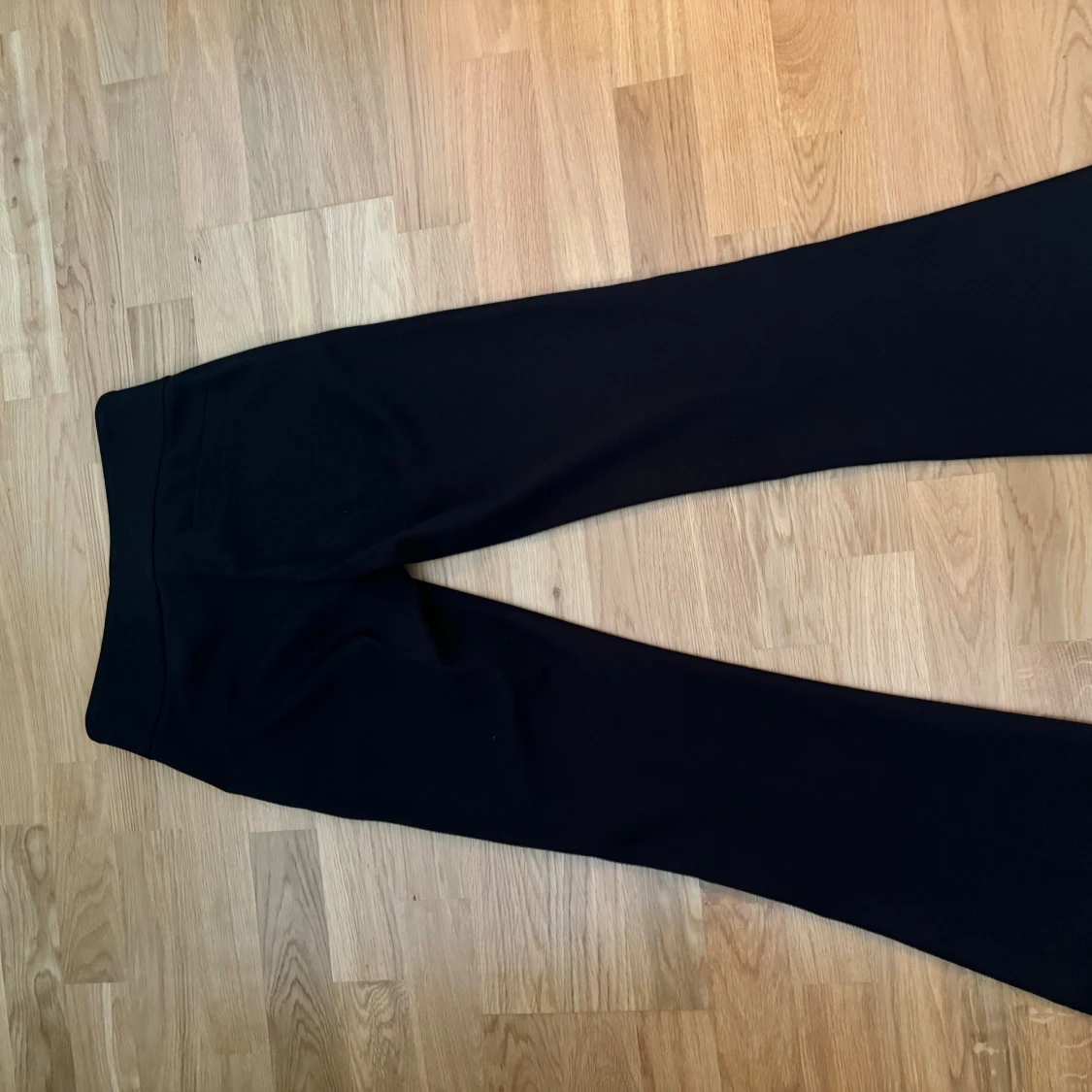 Svarta kostymbyxor med bootcut-silhuett och låg midja. Byxorna har en bred linning och diskreta bakfickor. Snyggt skräddade och i ett mjukt, följsamt tyg som ger en clean look. Fint skick.