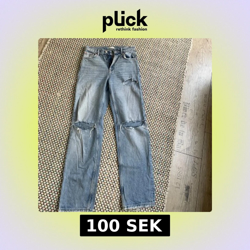 jeans med raka ben och snygga slitningar över knäna och bakfickorna. Klassisk femficksmodell i 100% bomull med hög midja och vintagekänsla. Perfekta för en avslappnad streetstil.