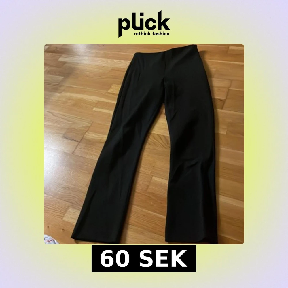 Snygga svarta kostymbyxor från Gina Tricot i storlek 34. Byxorna har hög midja, raka ben och diskreta fickor bak. Materialet är mjukt och har en lätt stretch för extra komfort. Perfekta för en clean och stilren look.