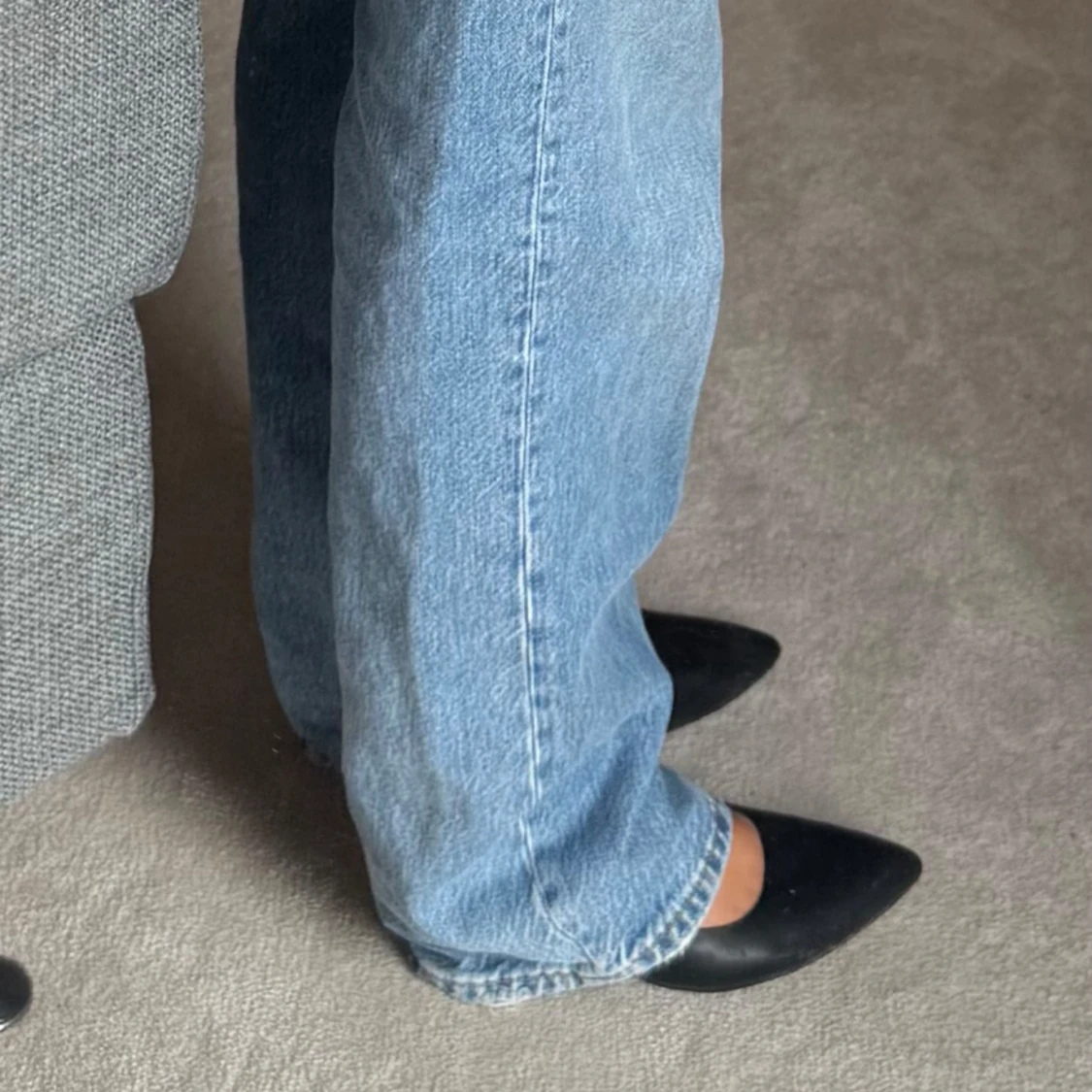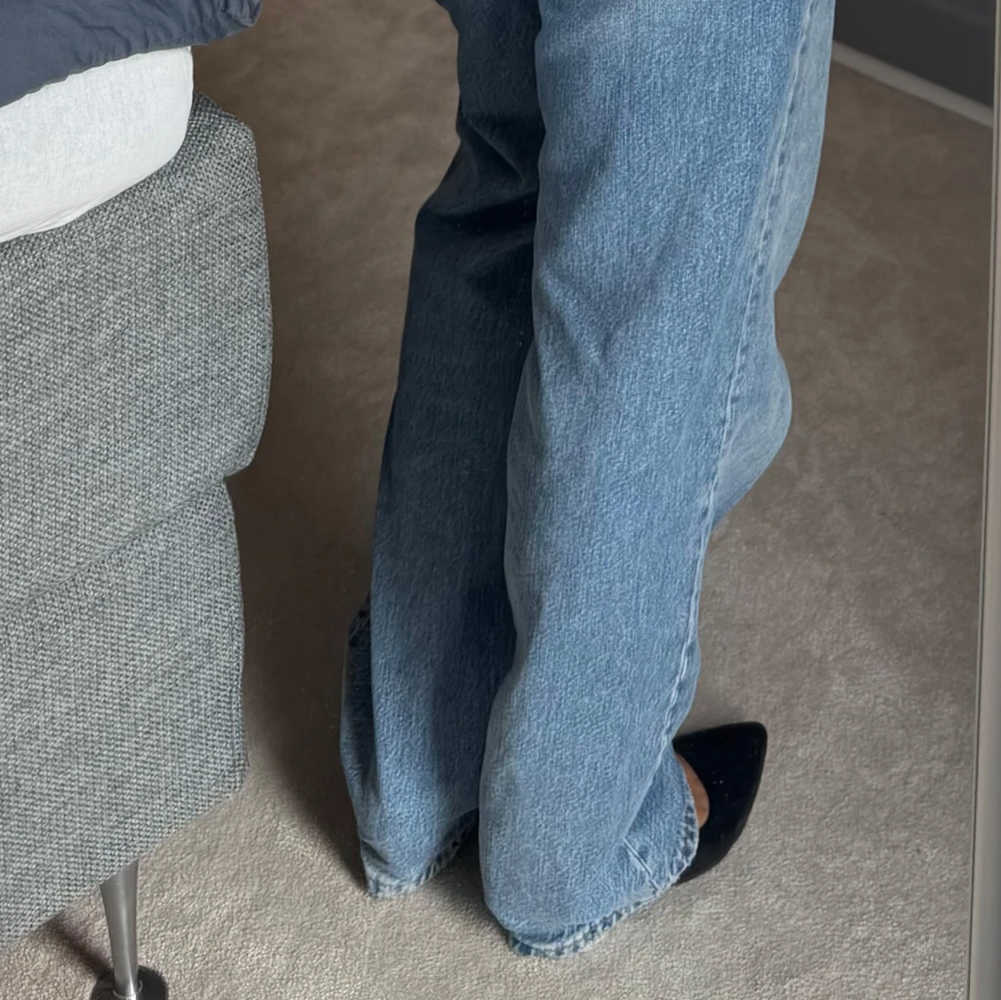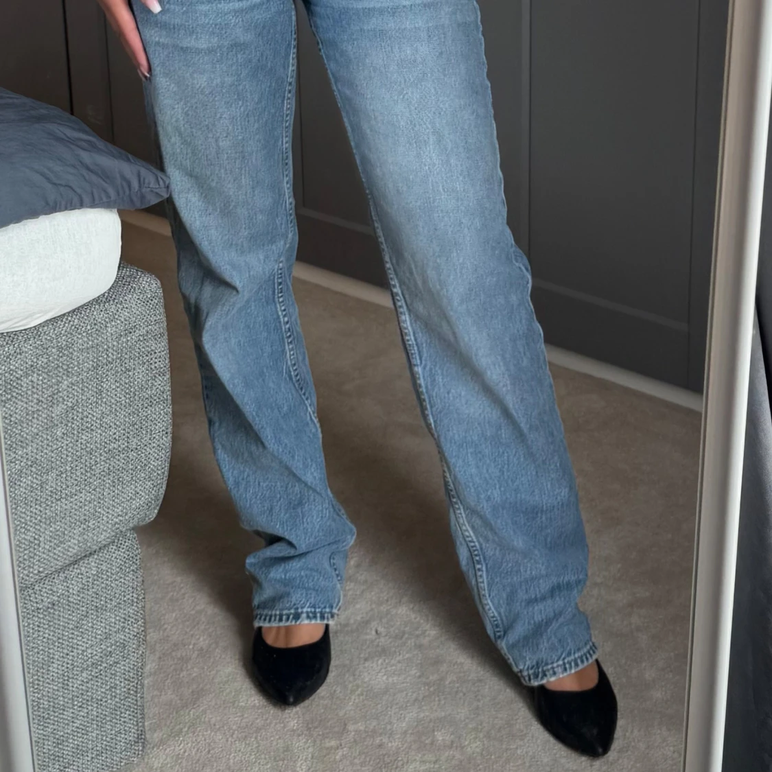 Säljer ett par klassiska blå jeans med rak passform och normal midja. Perfekta till sneakers eller boots för en chill look. Jag är 170 och de är lite långa.