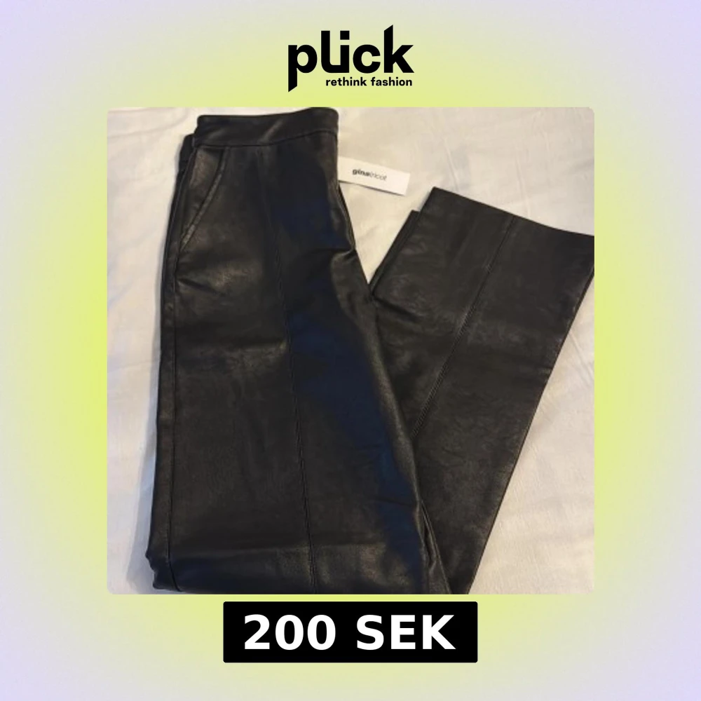 Snygga svarta skinnbyxor från Gina Tricot med hög midja och raka ben. Perfekta för en trendig look. Byxorna har en stilren design med dragkedja och knapp framtill.