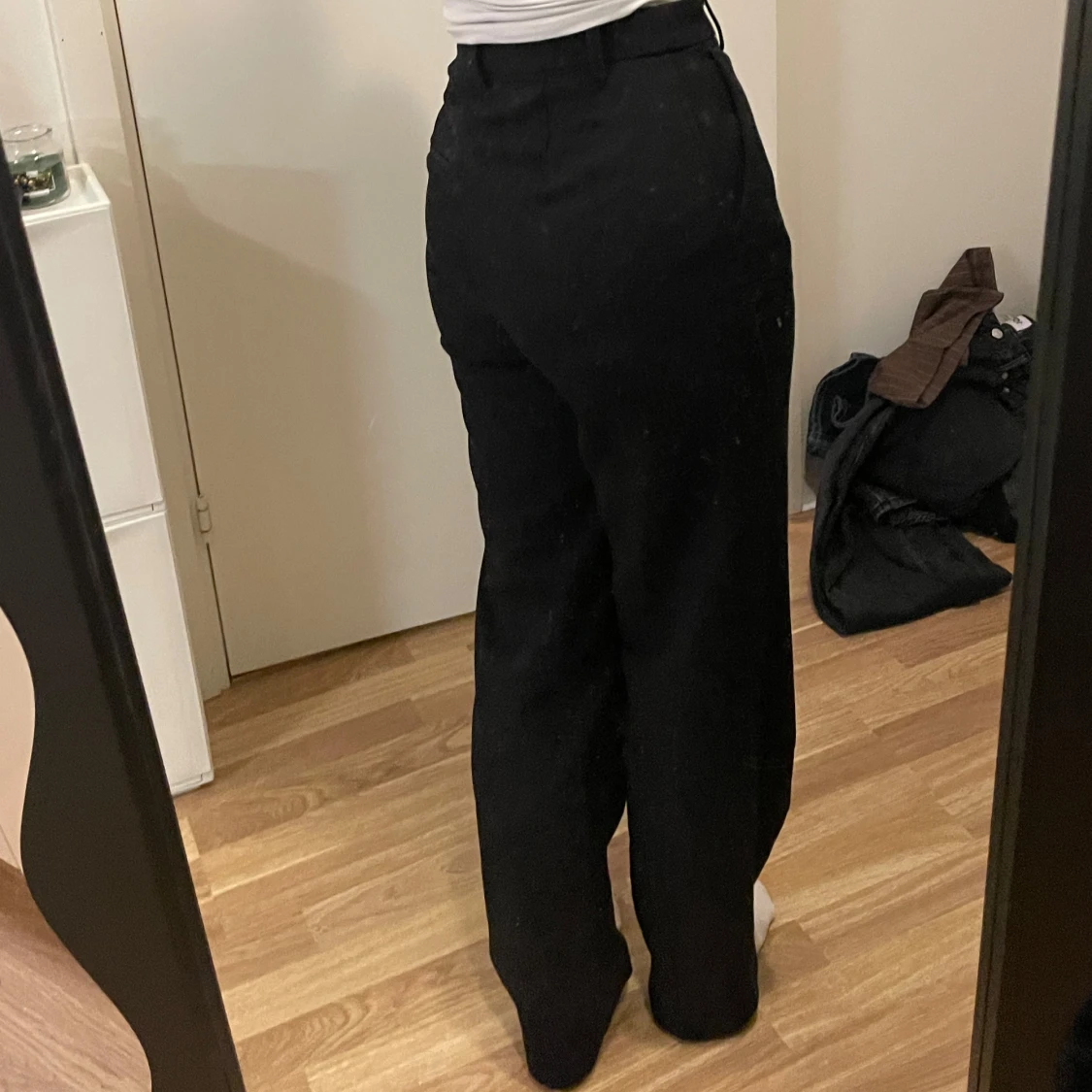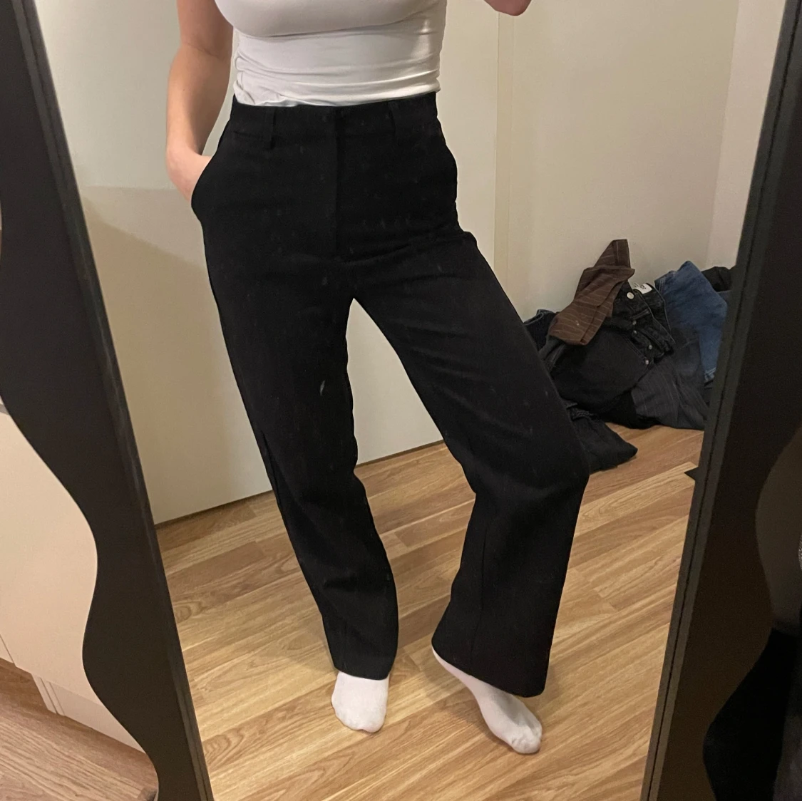 Snygga svarta byxor från Gina Tricot med hög midja och rak passform. Tjock kostymbyxor material. Jag är 160cm