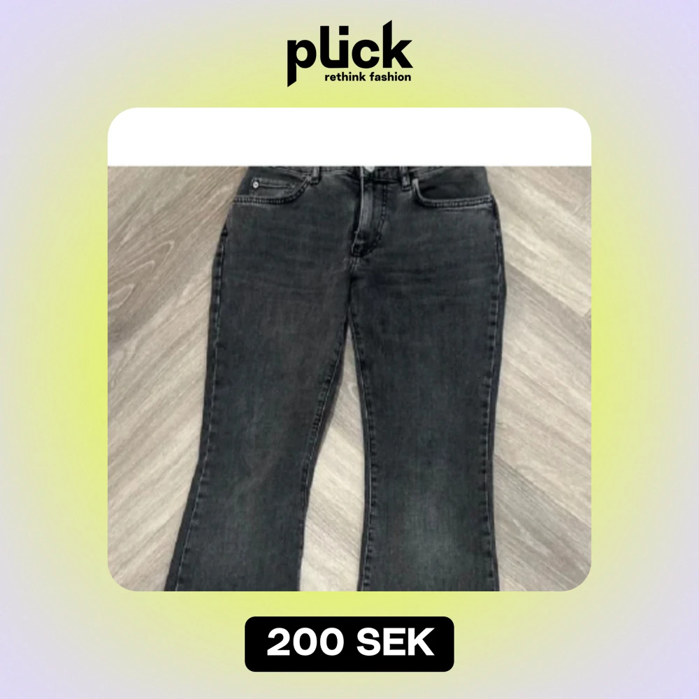 Jeans från Gina Tricot som tyvärr har blivit för korta på mig, jag är 173cm lång! Dem är sjukt fina och har en fin passform, dem är boot cut. Lite mörkare går färg Inga defekter i ganska bra skick! Skicka om ni har några frågor😊
