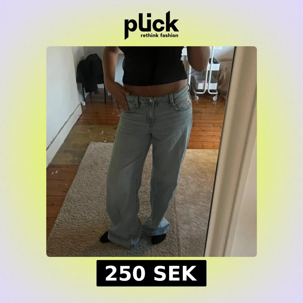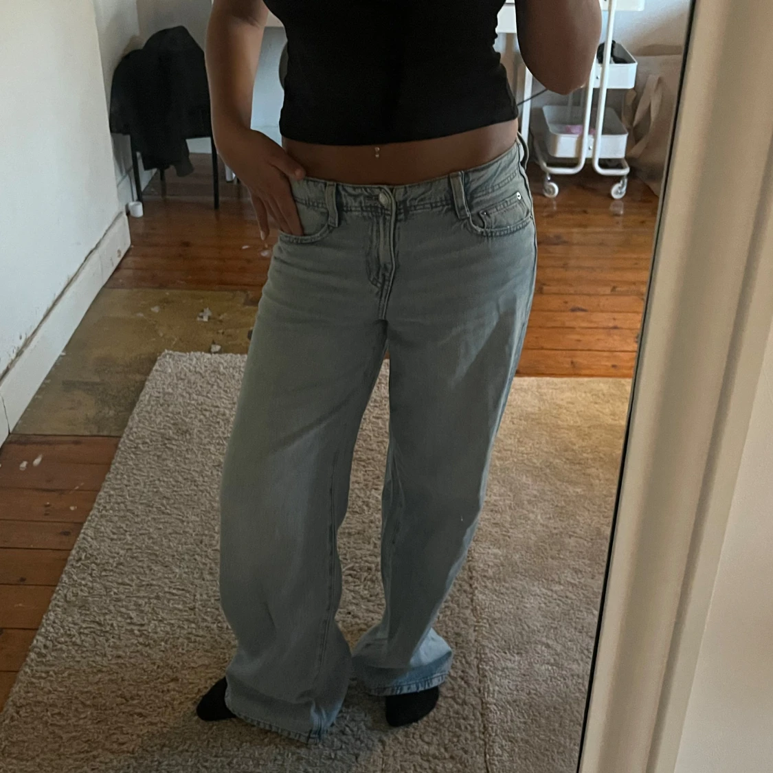 Säljer ett par ljusblåa jeans med rak passform och låg midja. Perfekta till vardags och lätta att matcha med olika toppar.