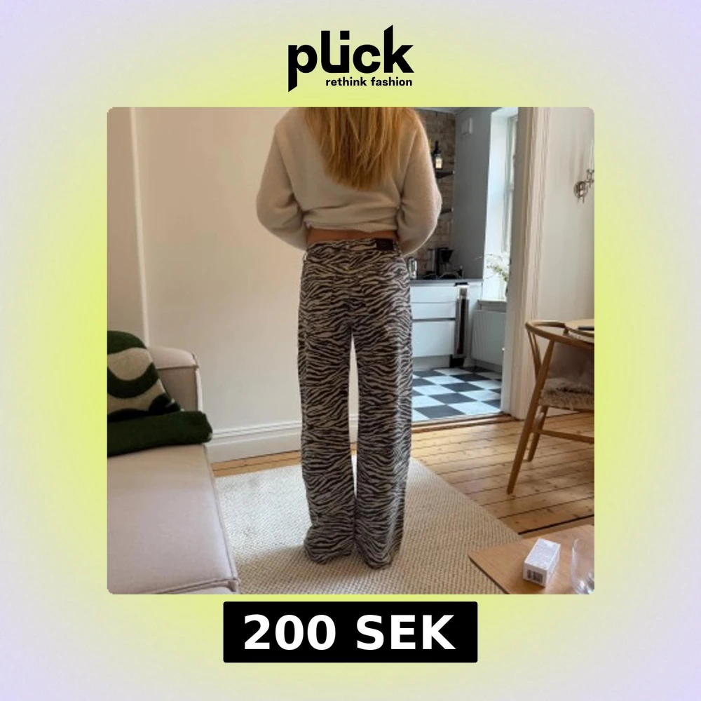 Säljer ett par riktigt snygga jeans med zebramönster i svart och beigt. Byxorna har en rak och wide passform med en lägre midja. Perfekta för dig som vill sticka ut och rocka en rolig outfit. Osäker på storlek, säg till om du vill veta exakt. Använda 2 gånger.